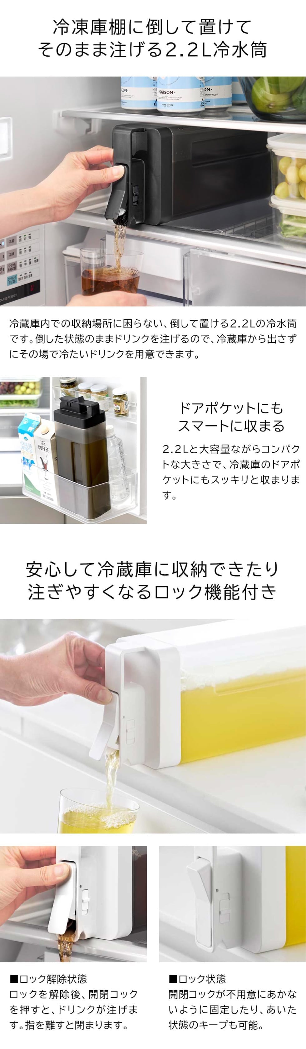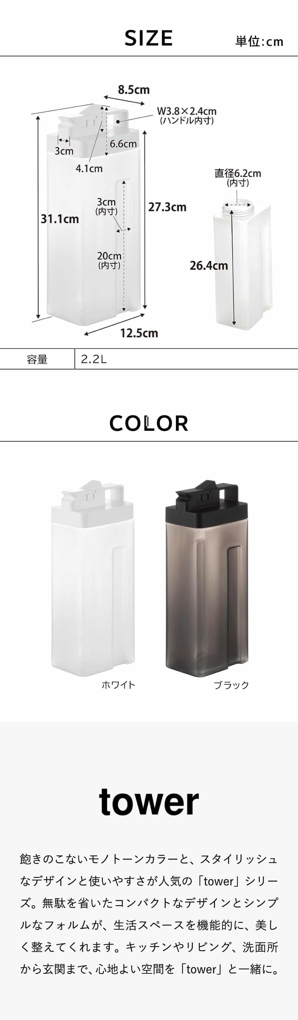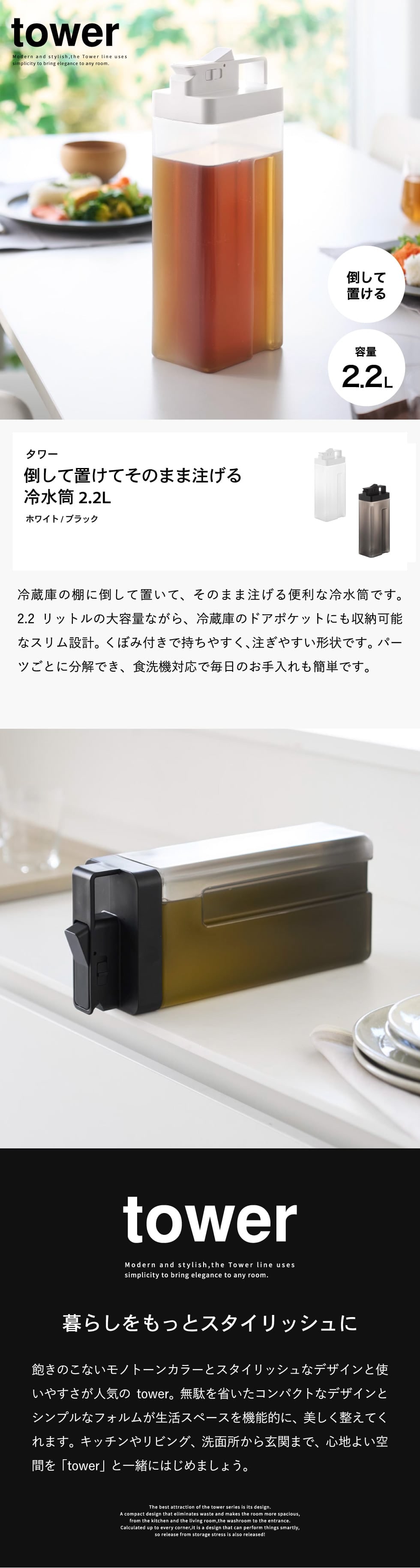 | 倒して置けてそのまま注げる冷水筒 タワー 2.2L |