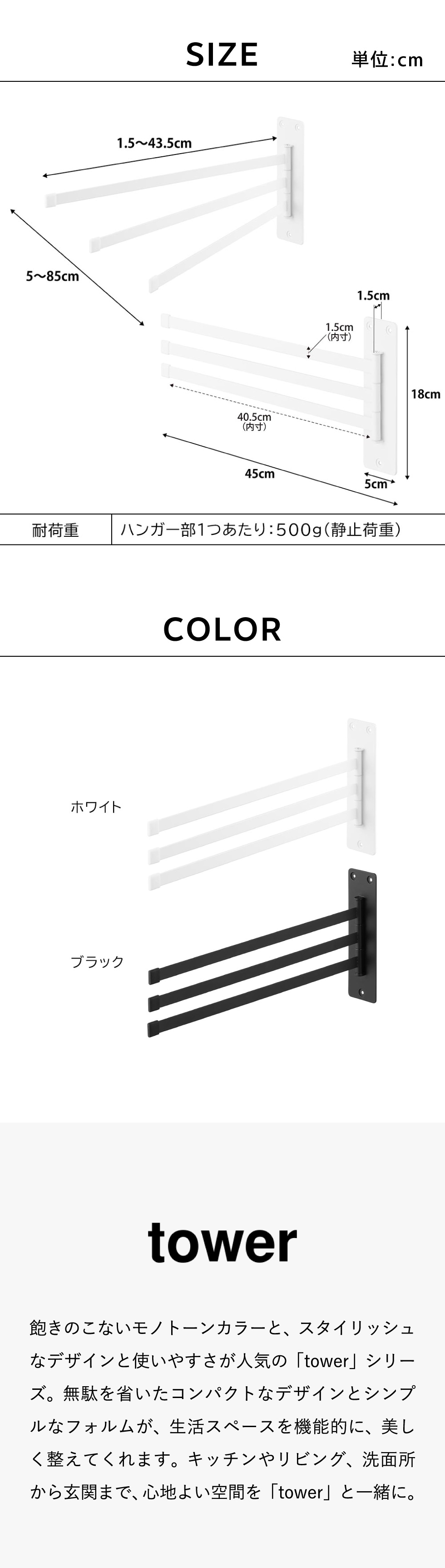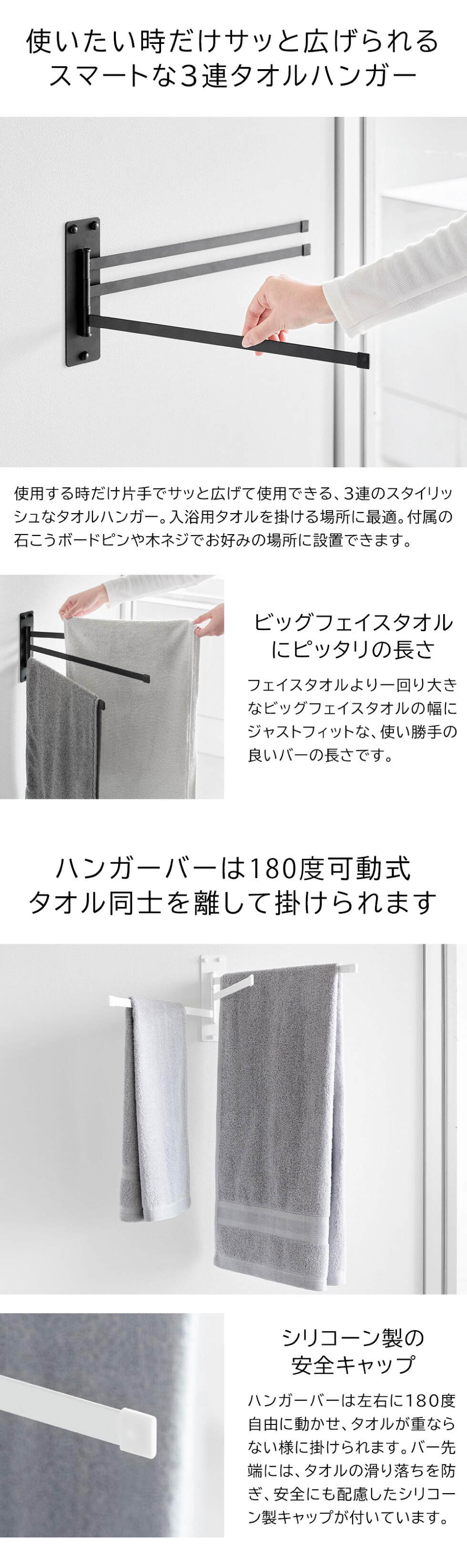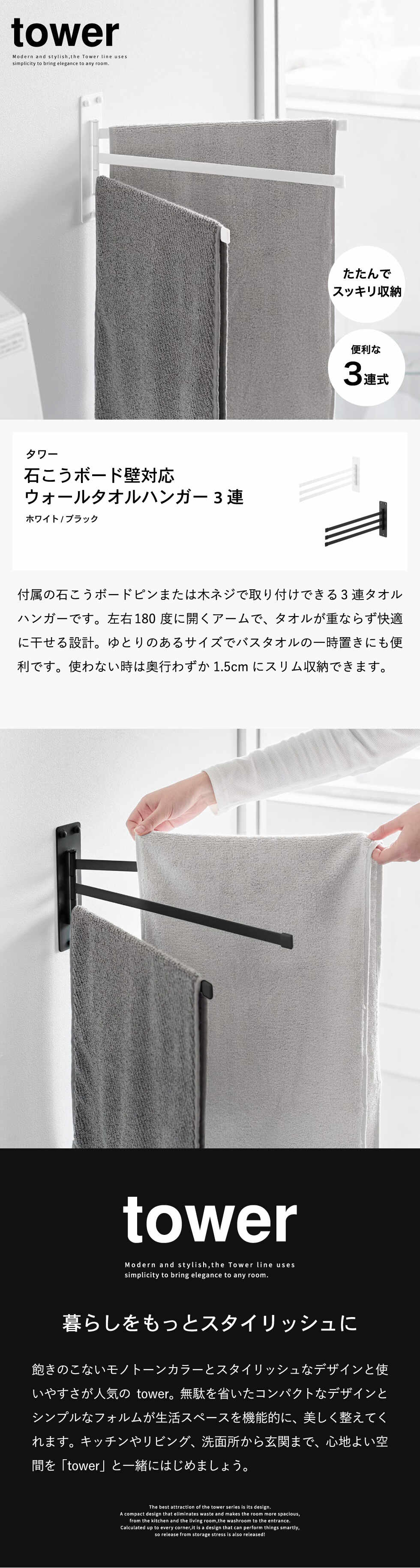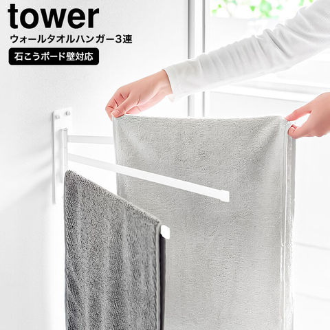 山崎実業 tower ウォールタオルハンガー タワー 3連 石こうボード壁対応 公式 10098 10099 送料無料 / 3枚 タオル掛け 洗面所 脱衣所 布巾掛け ふきん掛け キッチン yamazaki タワーシリーズ JGS / ホワイト