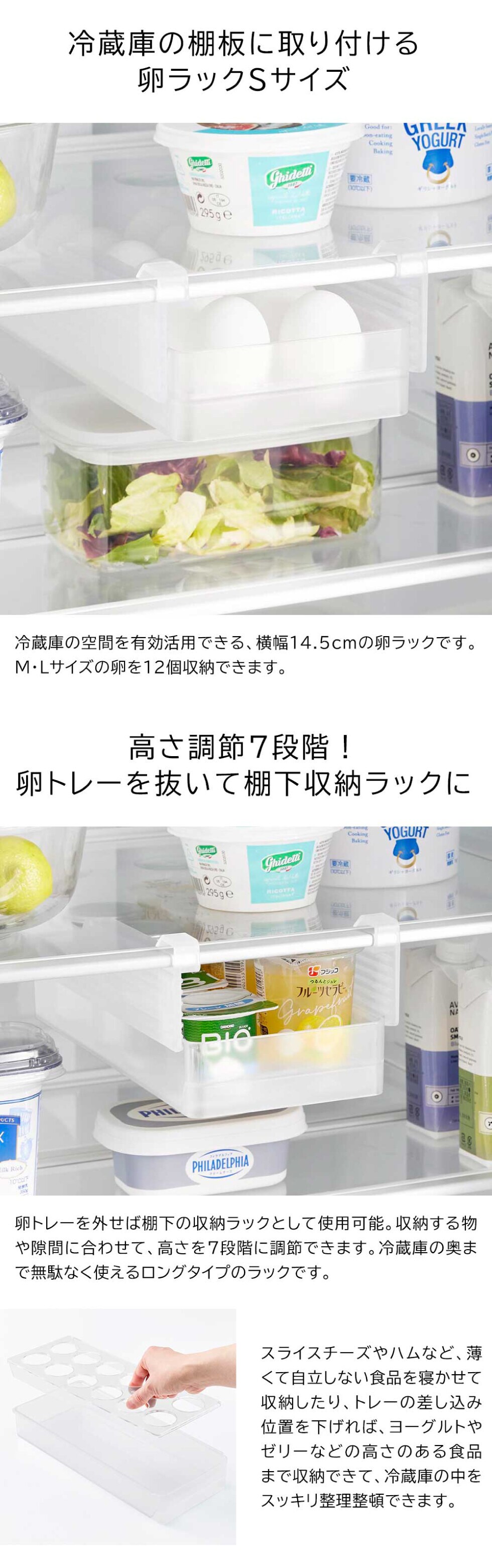 対応サイズ 収納可能数 卵(M・L)12個 |