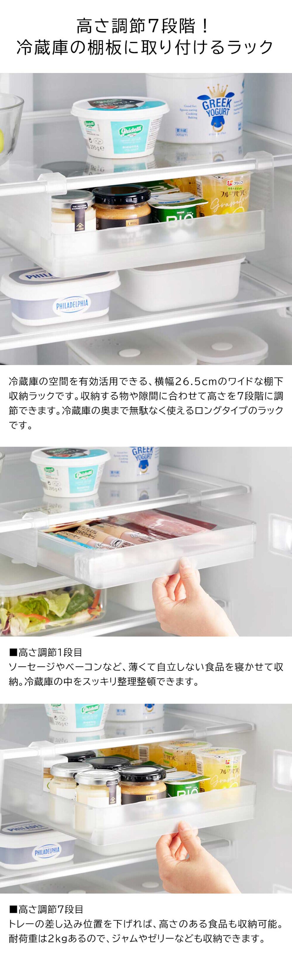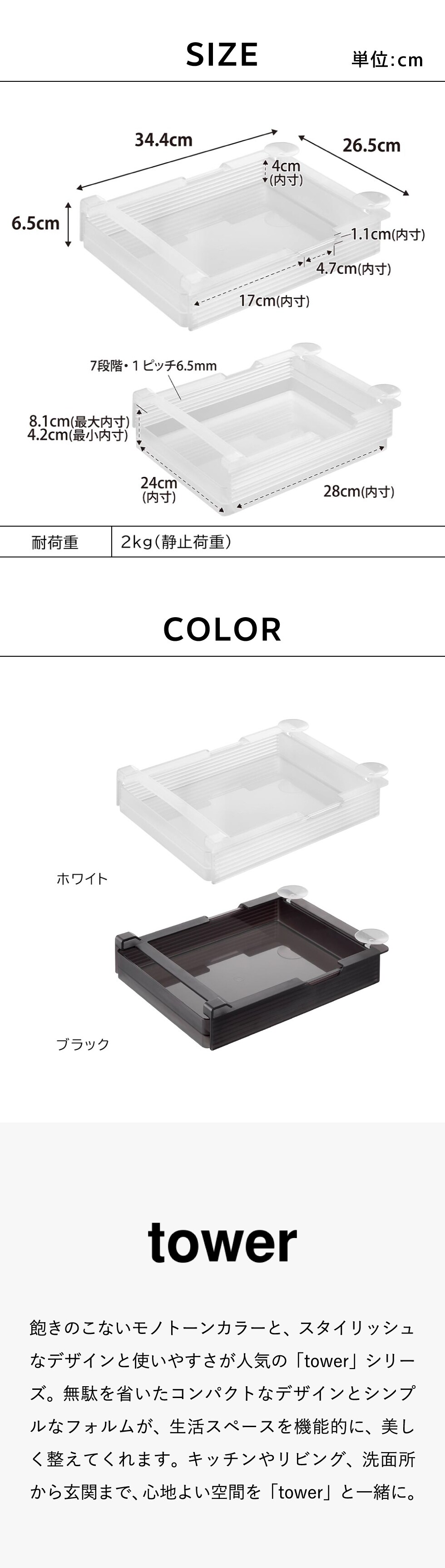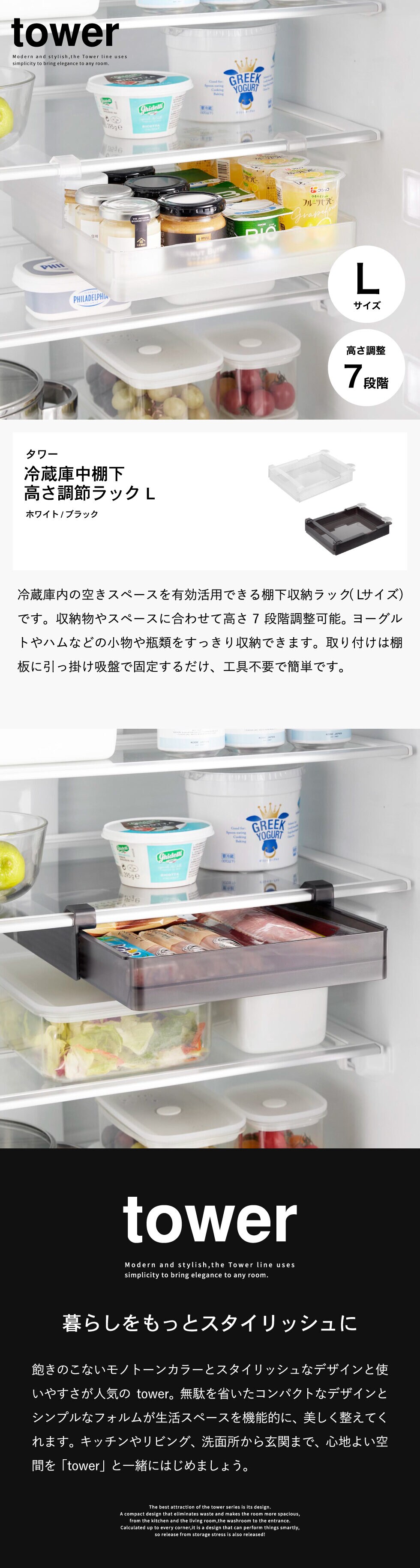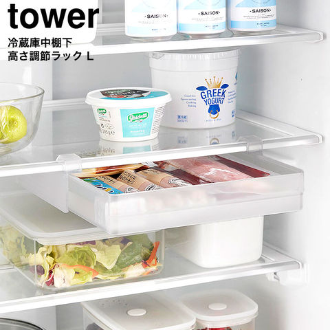 山崎実業 tower 冷蔵庫中棚下高さ調節ラック タワー L 公式 10110 10111 送料無料 / 冷蔵庫内 収納ケース 収納ボックス 整理トレー 整理ケース 冷蔵庫収納 タワーシリーズ yamazaki / ホワイト