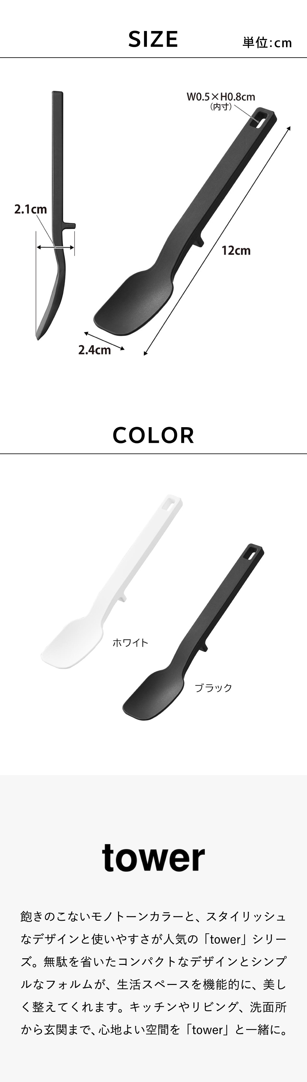 山崎実業 tower シリコーンスプーン タワー S 公式 10045 10046 / スパチュラ ヘラ シリコン ミニスプーン ジャム キッチンツール 計量スプーン シリコン yamazaki タワーシリーズ / ホワイト
