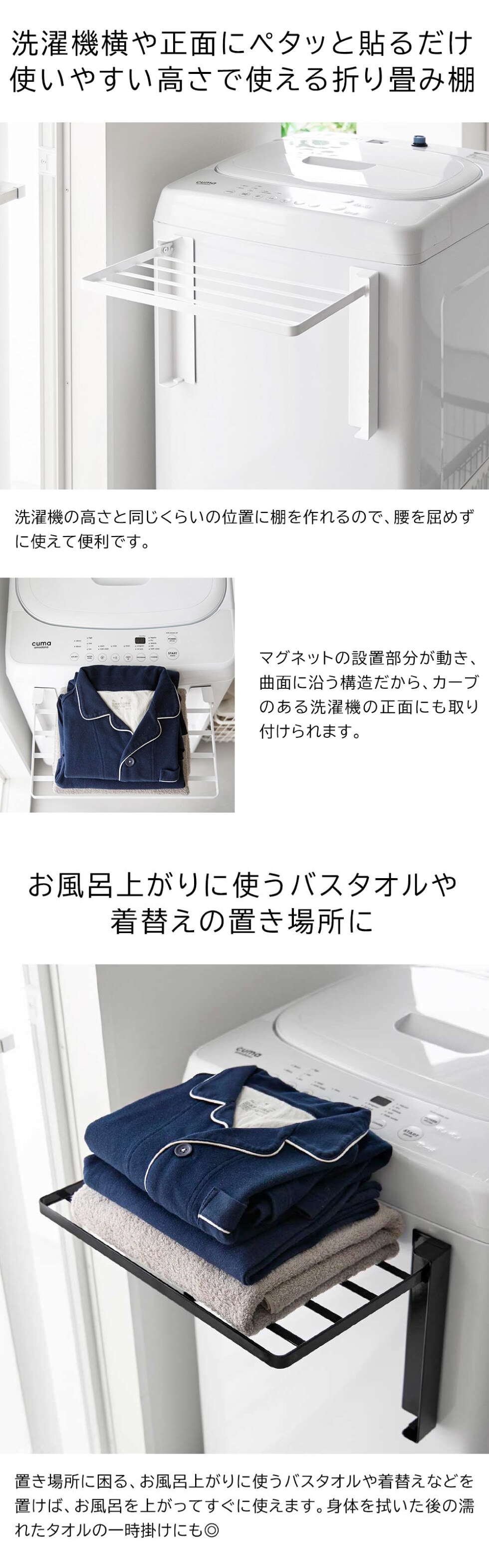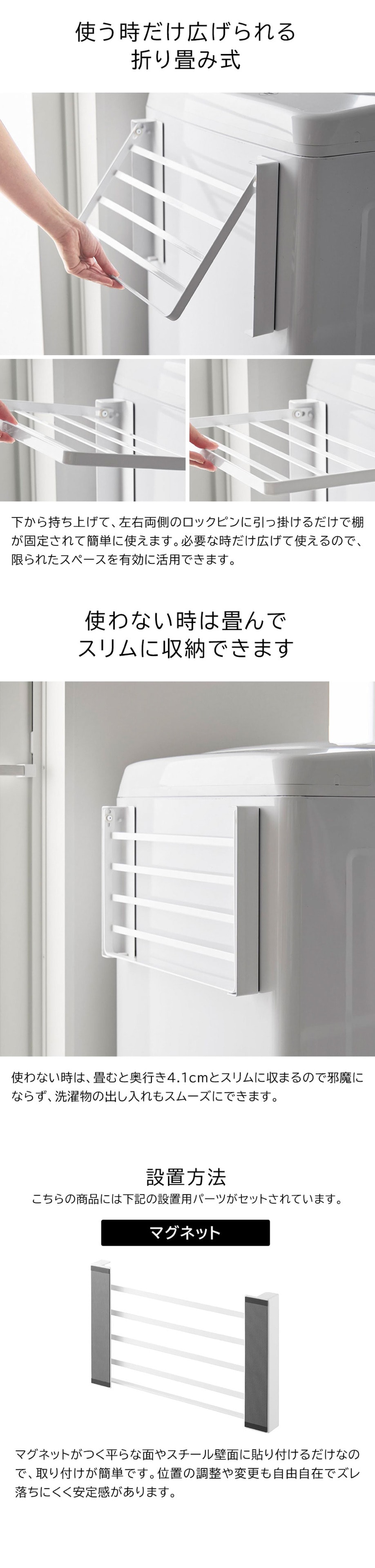 使いやすい高さに開くマグネット洗濯機横折り畳み棚 タワー