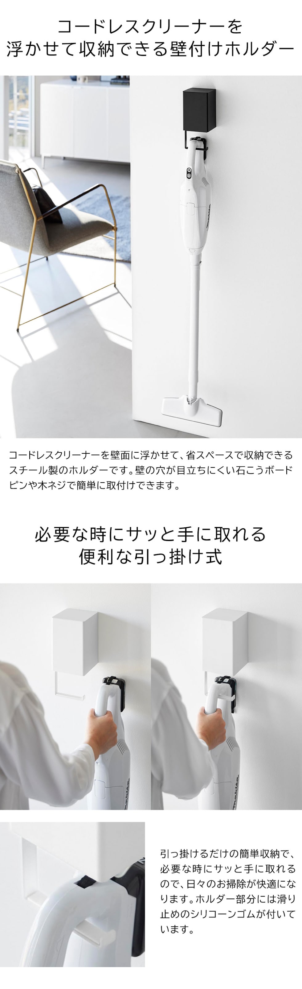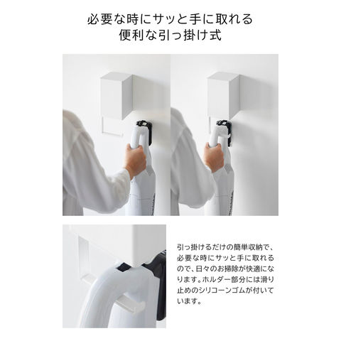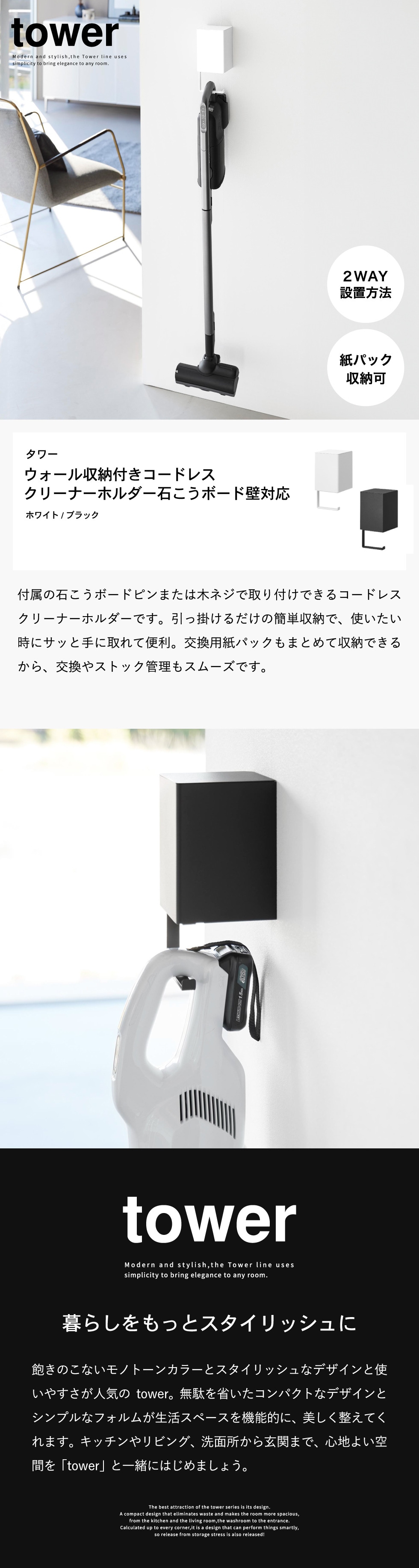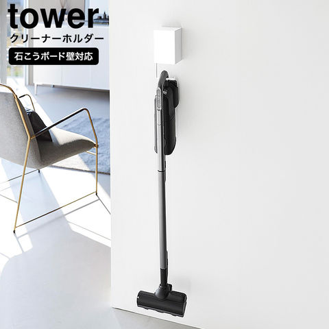 山崎実業 tower ウォール収納付きコードレスクリーナーホルダー タワー 石こうボード壁対応 公式 10082 10083 送料無料 / 掃除機スタンド 掃除用具 収納 スティッククリーナー 壁面収納 / ホワイト