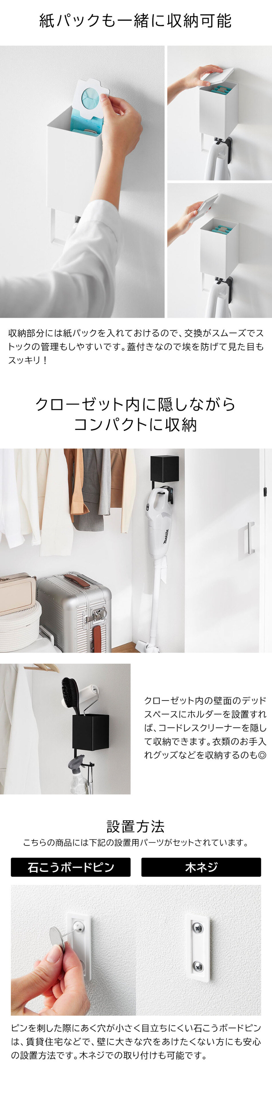 | ウォール収納付きコードレスクリーナーホルダー タワー 石こうボード壁対応 |