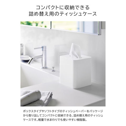 山崎実業 tower コンパクトティッシュケース タワー スクエア 公式 10054 10055 / ティッシュボックス ティッシュホルダー ティッシュカバー 詰め替え yamazaki タワーシリーズ / ホワイト