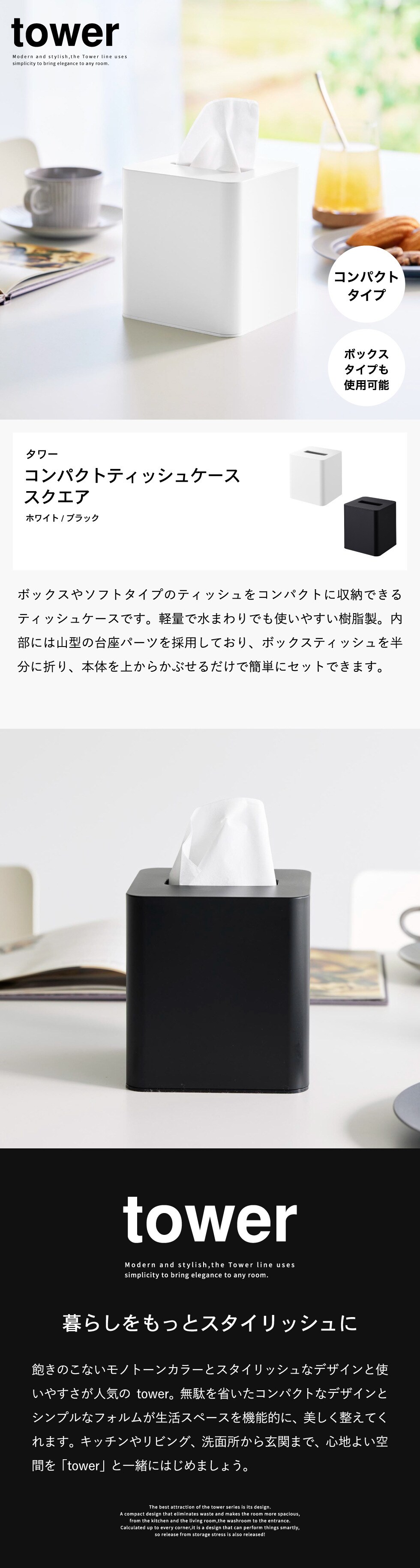 | コンパクトティッシュケース タワー スクエア |