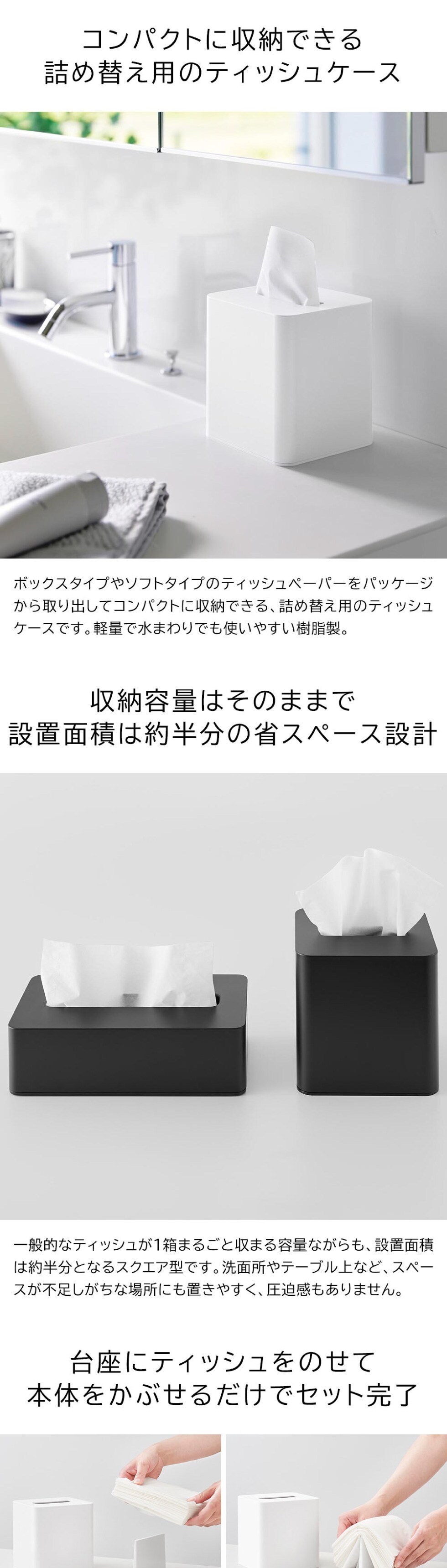 山崎実業 tower コンパクトティッシュケース タワー スクエア 公式 10054 10055 / ティッシュボックス ティッシュホルダー ティッシュカバー 詰め替え yamazaki タワーシリーズ / ブラック
