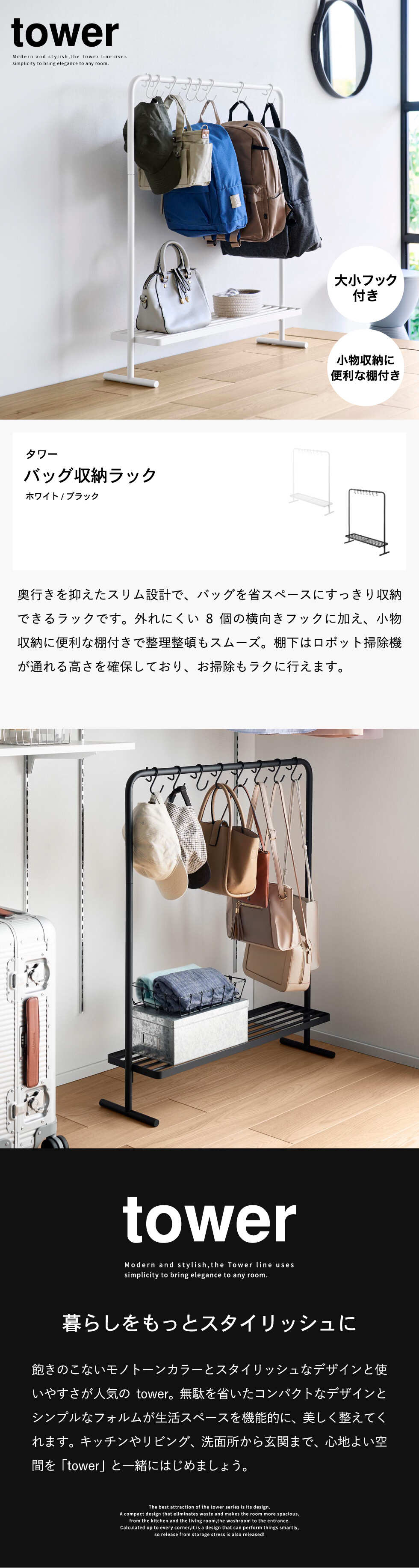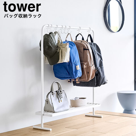 山崎実業 tower バッグ収納ラック タワー 公式 10157 10158 送料無料 / カバン掛け バッグラック かばん リュック 鞄 帽子 リビング 子供部屋 フック タワーシリーズ yamazaki JGS / ホワイト