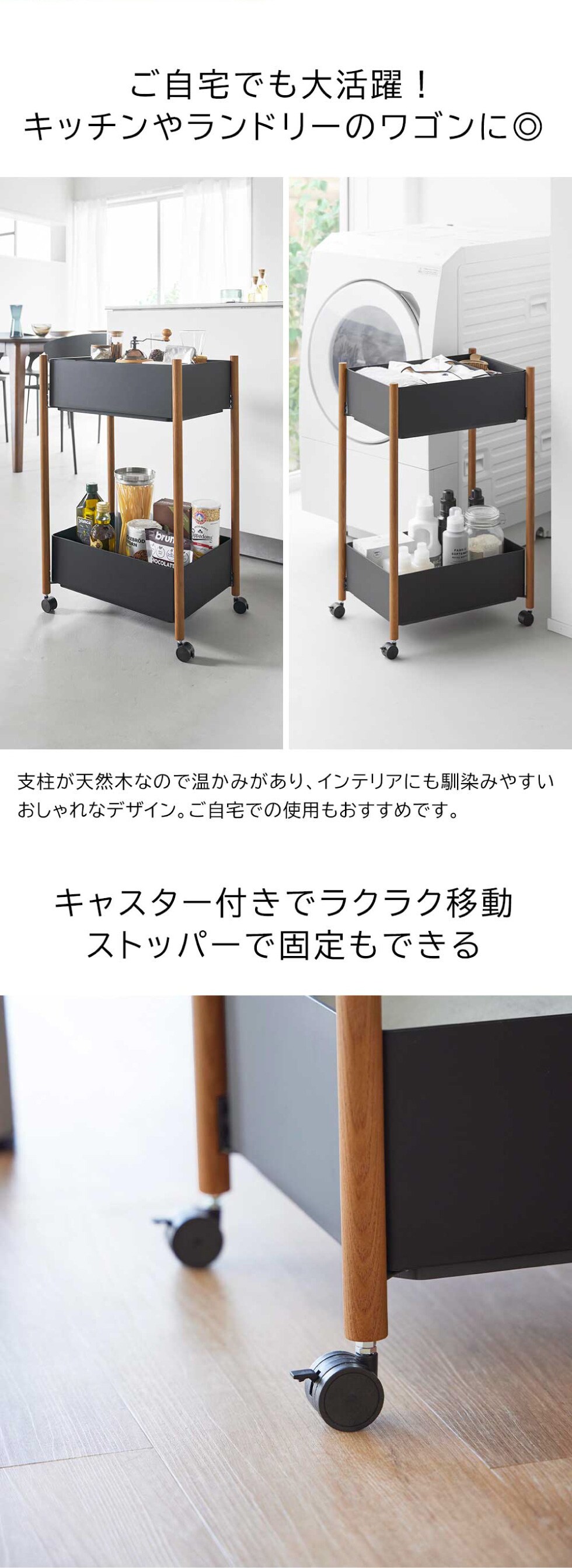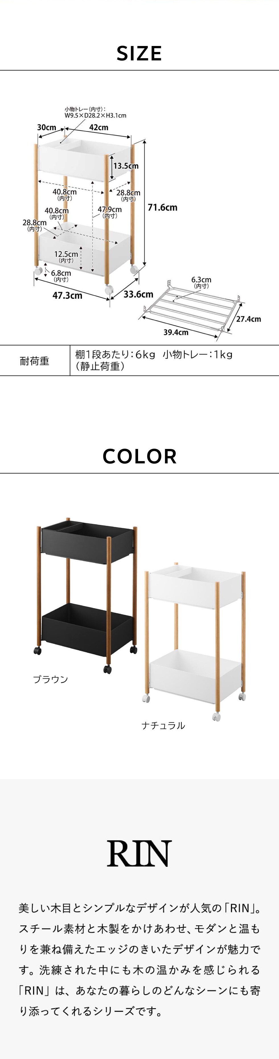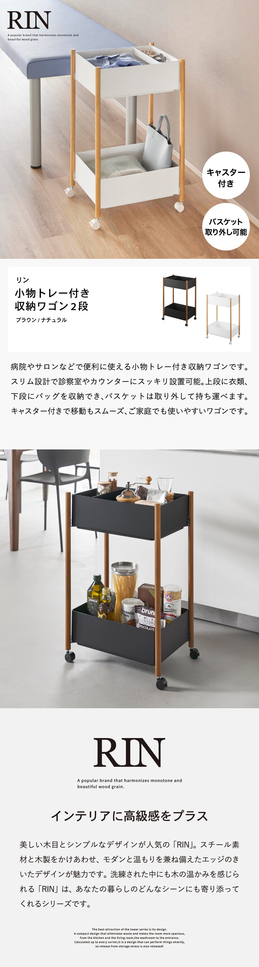RIN 小物トレー付き収納ワゴン 2段 リン 山崎実業 10179 10180 送料無料 / 更衣ワゴン 脱衣ワゴン キッチンワゴン キッチンラック 収納ラック ランドリーワゴン 洗面所 / ブラウン