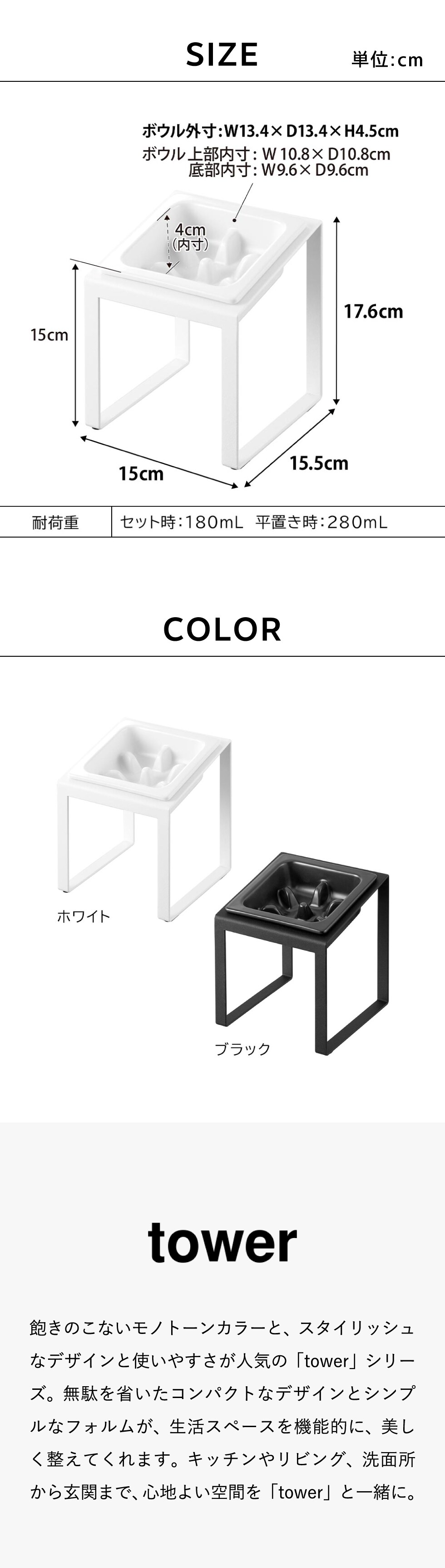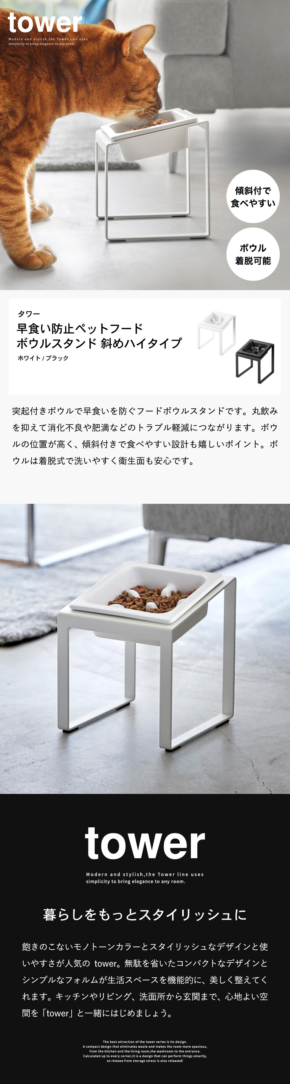 山崎実業 tower 早食い防止ペットフードボウルスタンド タワー 斜めハイタイプ 公式 10239 10240 送料無料 / 傾斜付き ハイタイプ 15cm ペット用食器 ペット用品 yamazaki タワーシリーズ / ホワイト