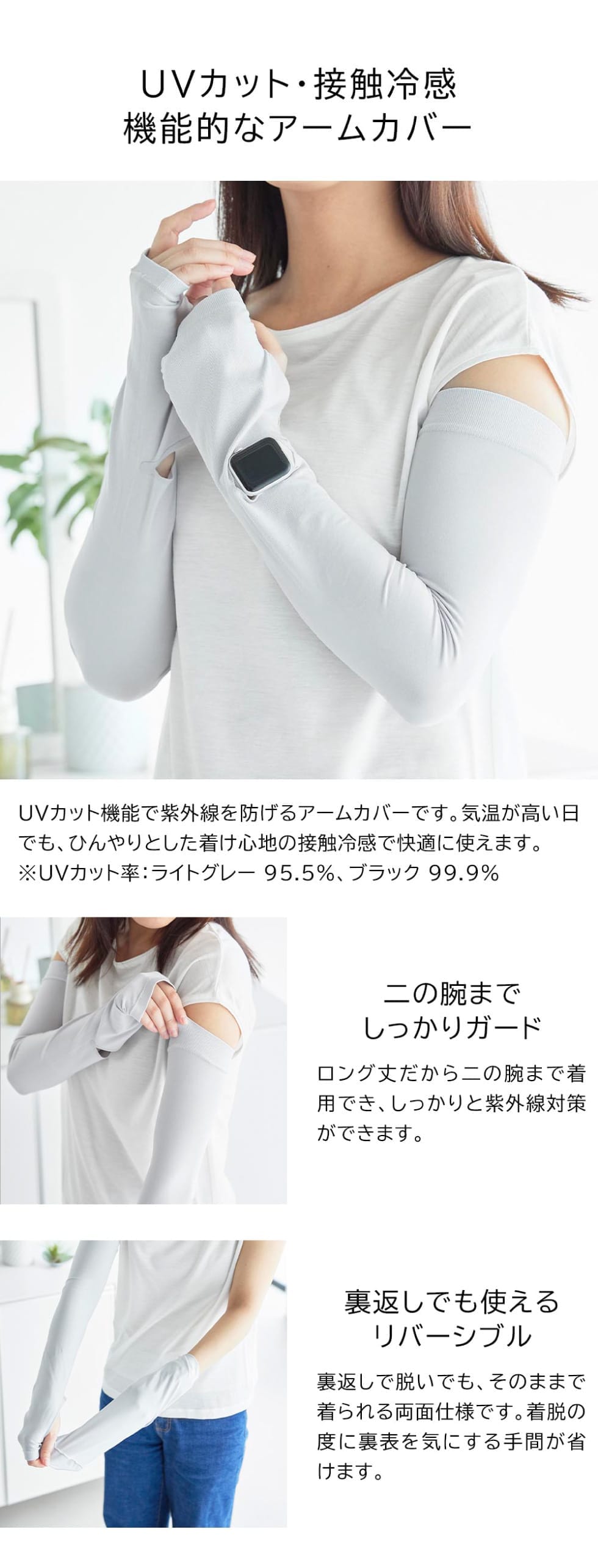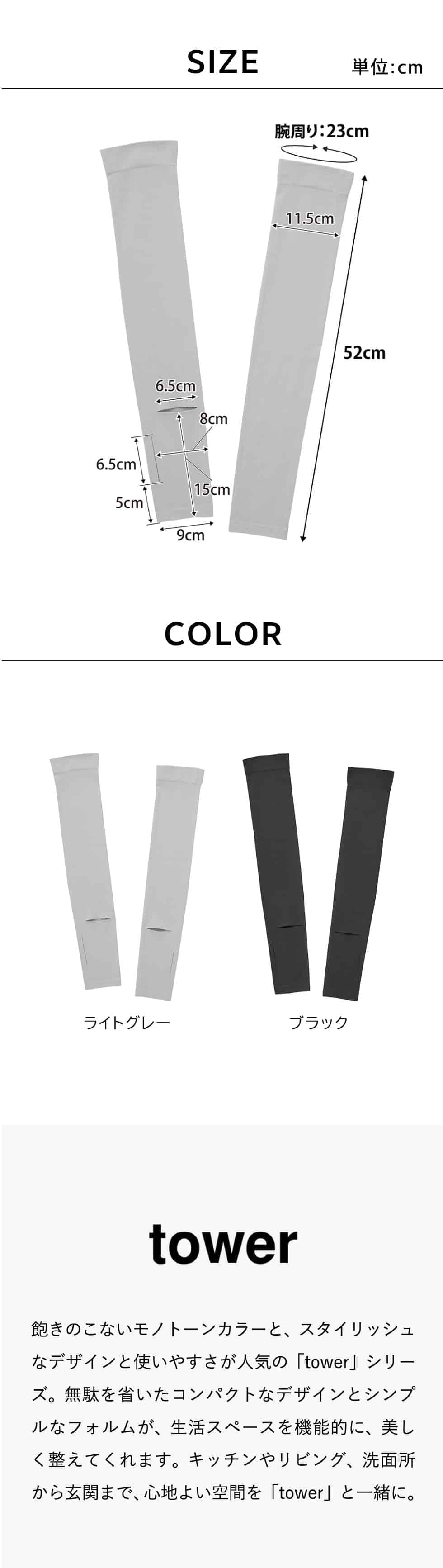 山崎実業 tower リバーシブルで使えるアームカバー タワー 公式 10211 10212 / 時計スリット 時計が見える UV 冷感 UVカット 紫外線カット 接触冷感 UPF50+ 日焼け対策 yamazaki JGS / ブラック