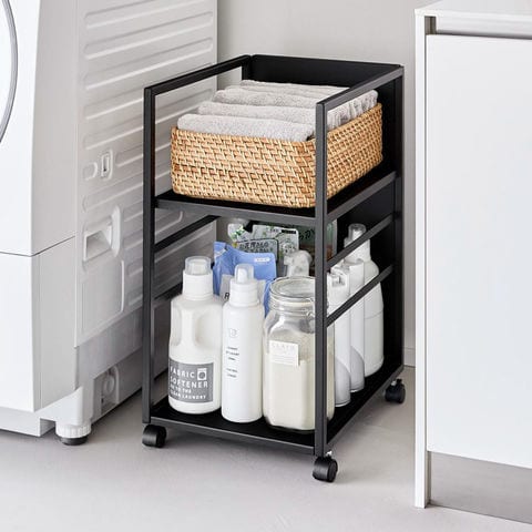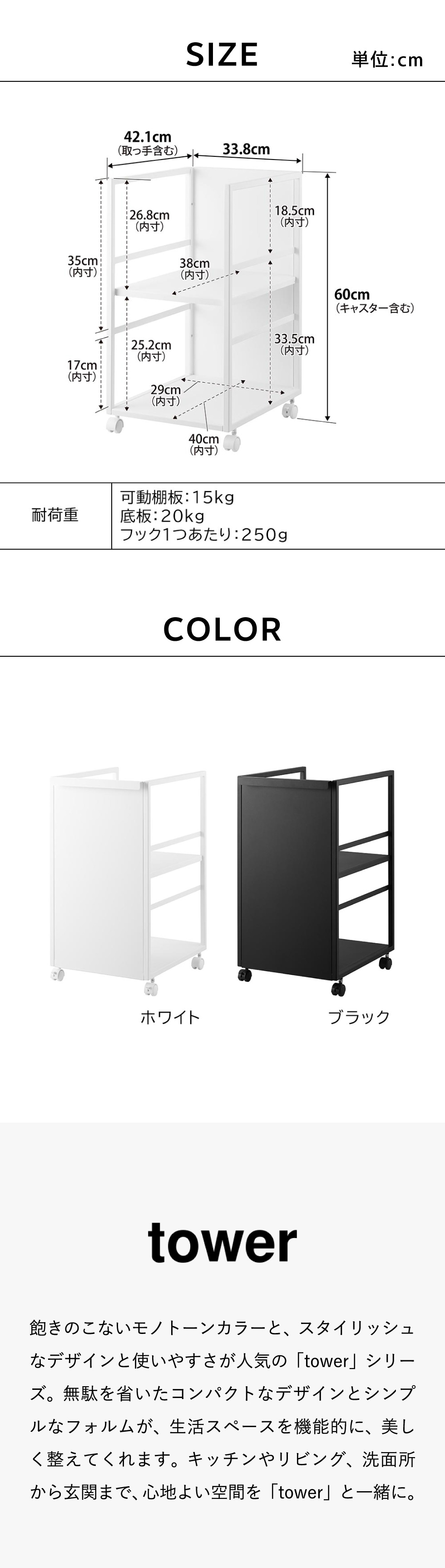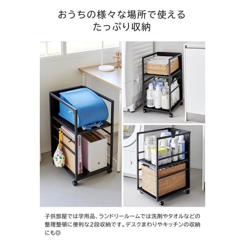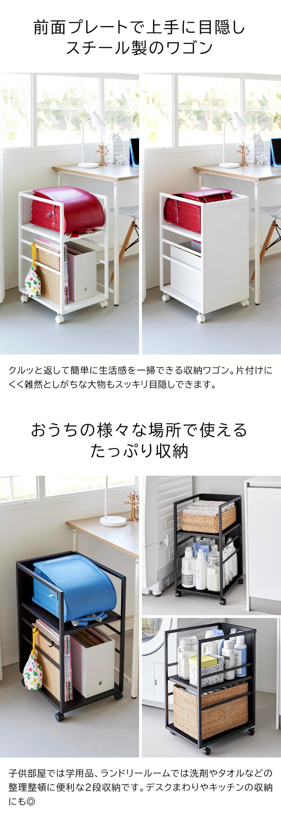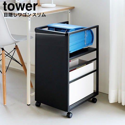 山崎実業 tower 目隠しワゴン タワー スリム 公式 8468 8469 送料無料 / 2段 収納 キャスターワゴン キャスター付き キッチンワゴン ランドセルラック デスクワゴン タワーシリーズ yamazaki / ブラック