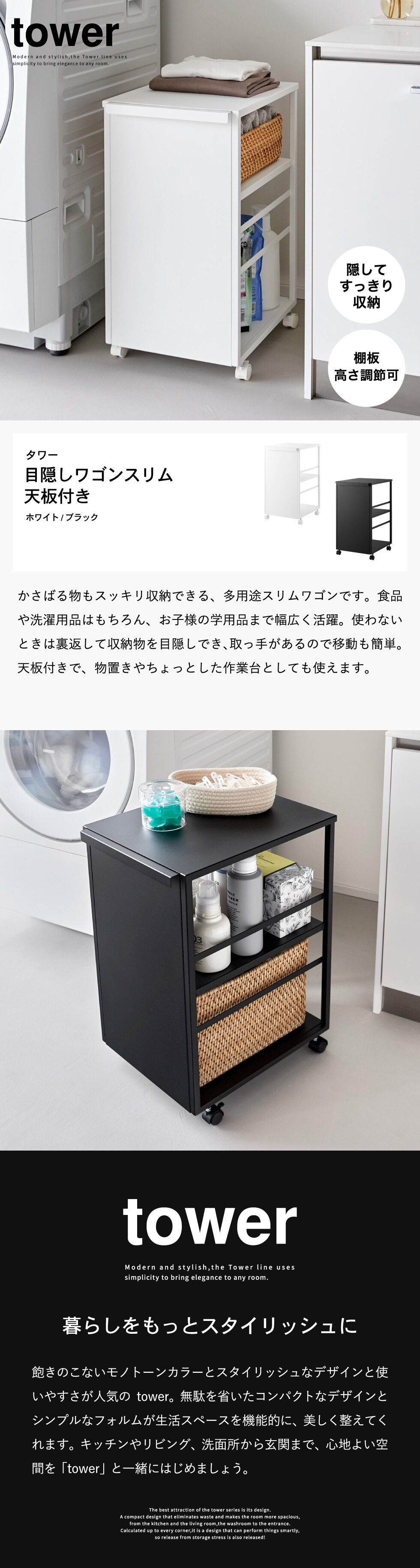 山崎実業 tower 目隠しワゴン タワー スリム 天板付き 公式 8470 8471 送料無料 / 2段 収納 ランドリーワゴン キャスターワゴン キッチンワゴン ランドセルラック タワーシリーズ yamazaki / ホワイト