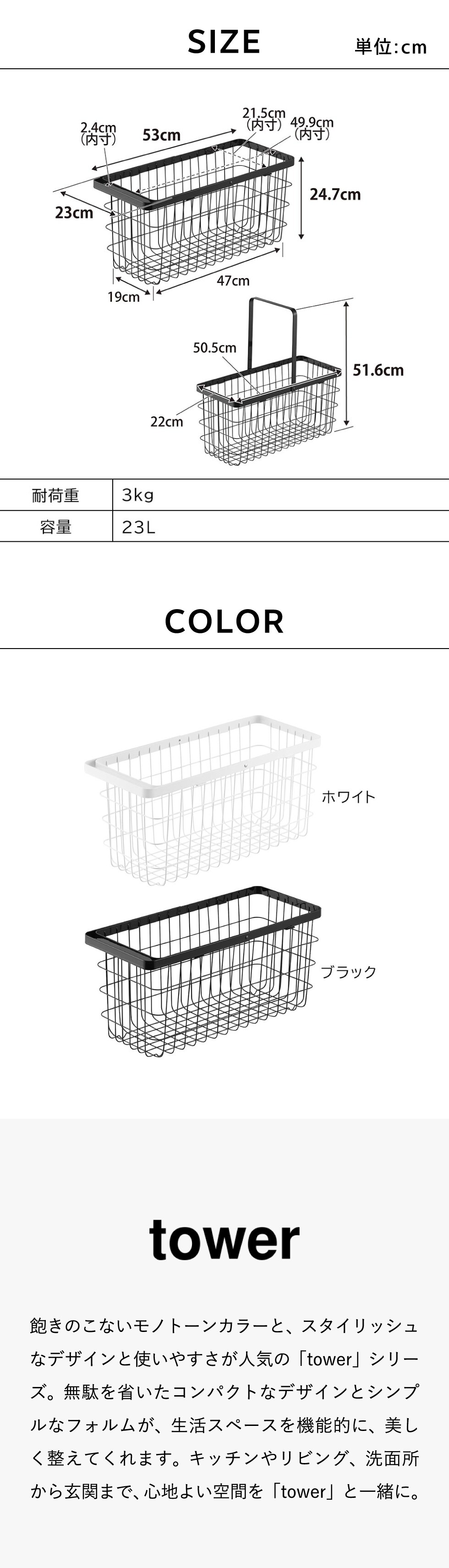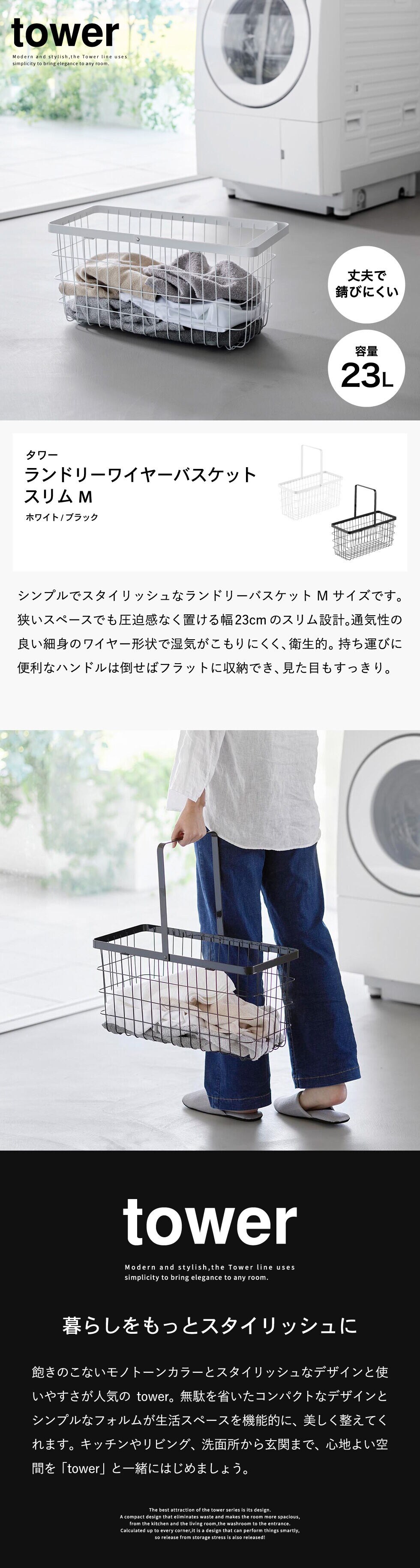 山崎実業 tower ランドリーワイヤーバスケット タワー スリム M 公式 10001 10002 送料無料 / 容量23L 洗濯かご 洗濯カゴ ランドリーバスケット ランドリー収納 洗濯機横 yamazaki / ホワイト