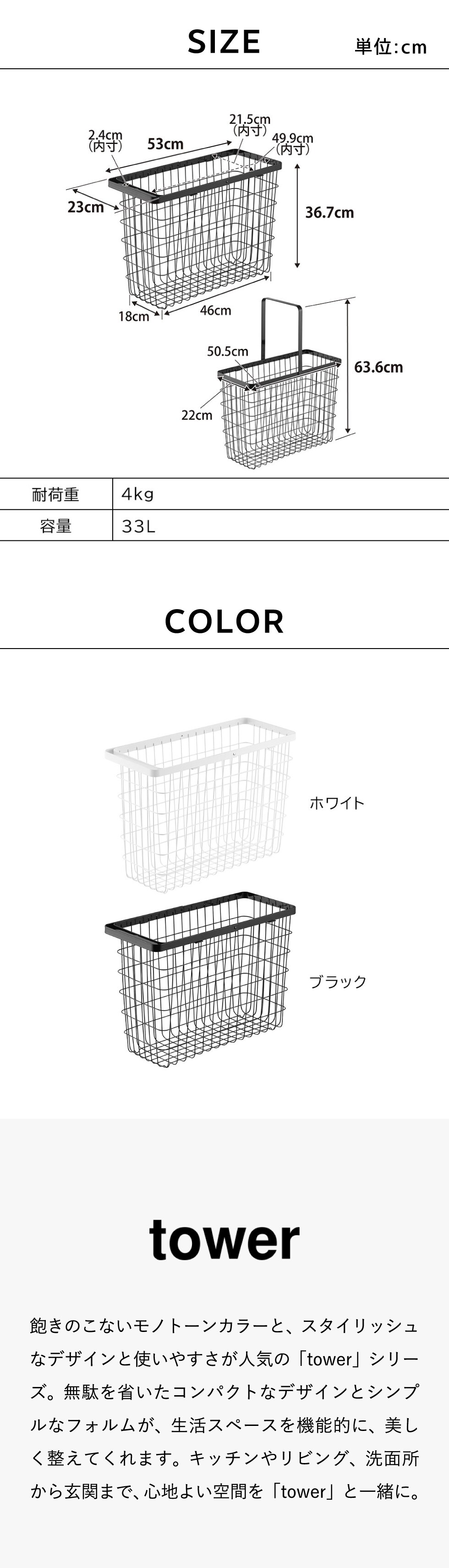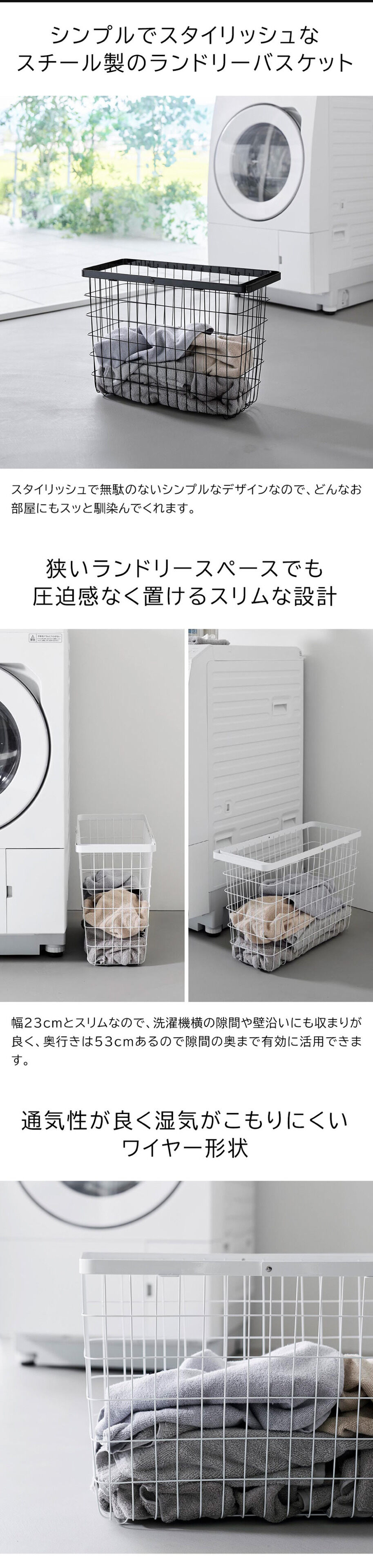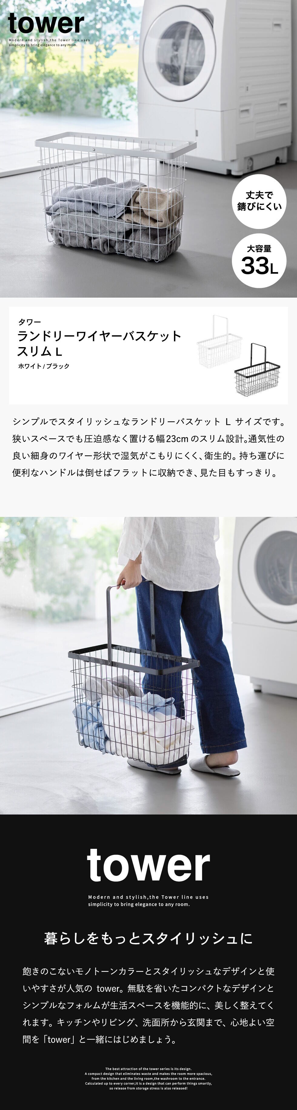 山崎実業 tower ランドリーワイヤーバスケット タワー スリム L 公式 10003 10004 送料無料 / 容量33L 洗濯かご 洗濯カゴ ランドリーバスケット ランドリー収納 洗濯機横 yamazaki / ブラック