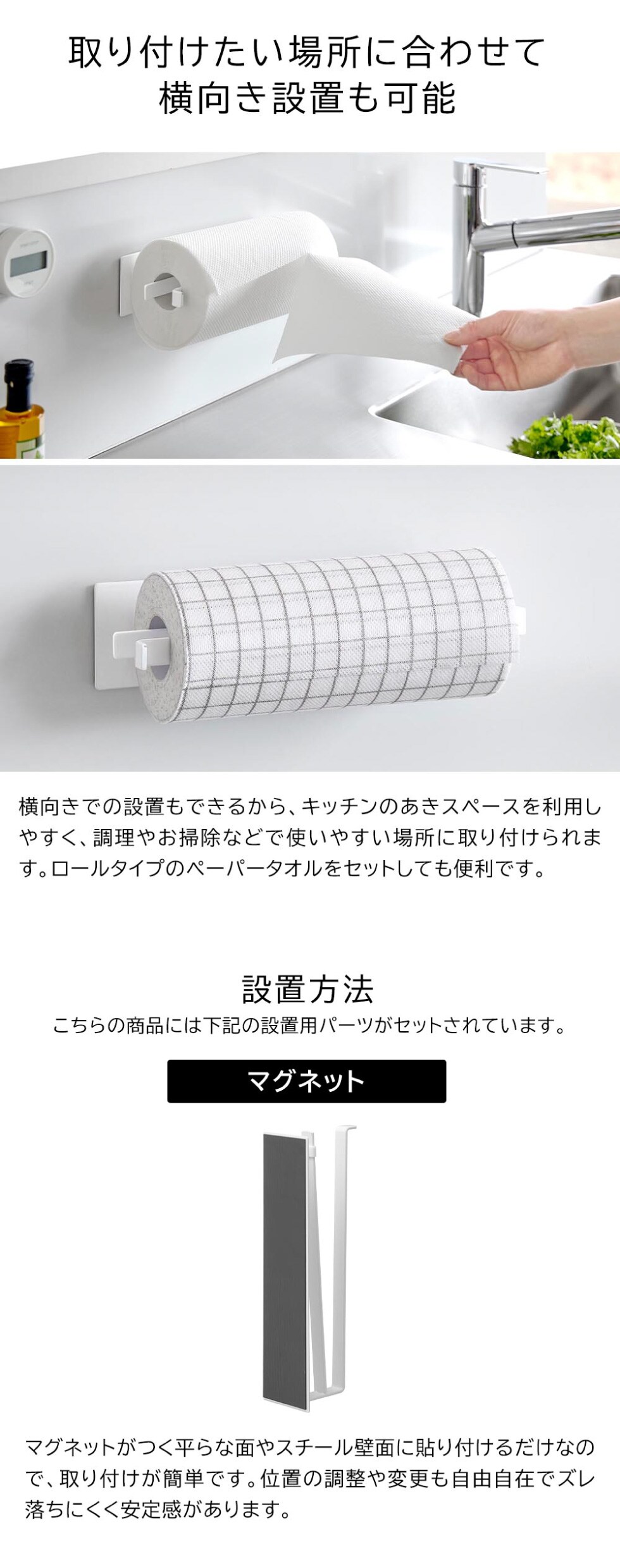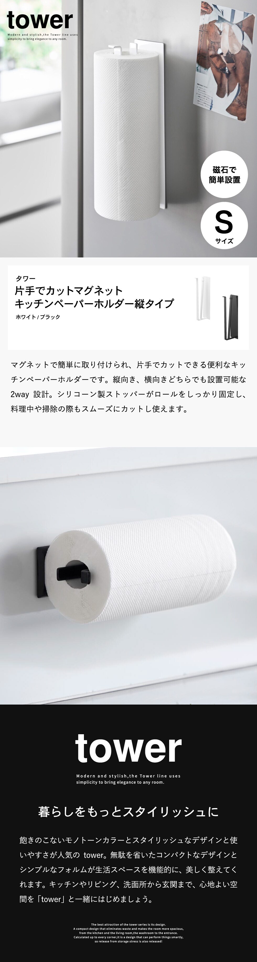 | 片手でカットマグネットキッチンペーパーホルダー タワー 縦タイプ |