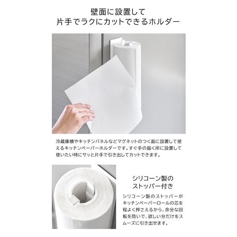 山崎実業 tower 片手でカットマグネットキッチンペーパーホルダー タワー 縦タイプ 公式 10268 10269 / 冷蔵庫横 キッチンパネル 台所 収納 磁石 壁面 浮かせる収納 yamazaki / ホワイト