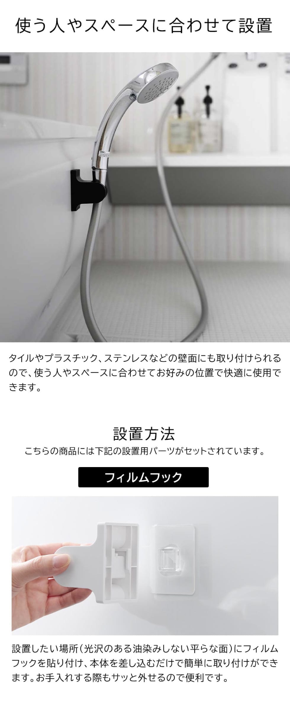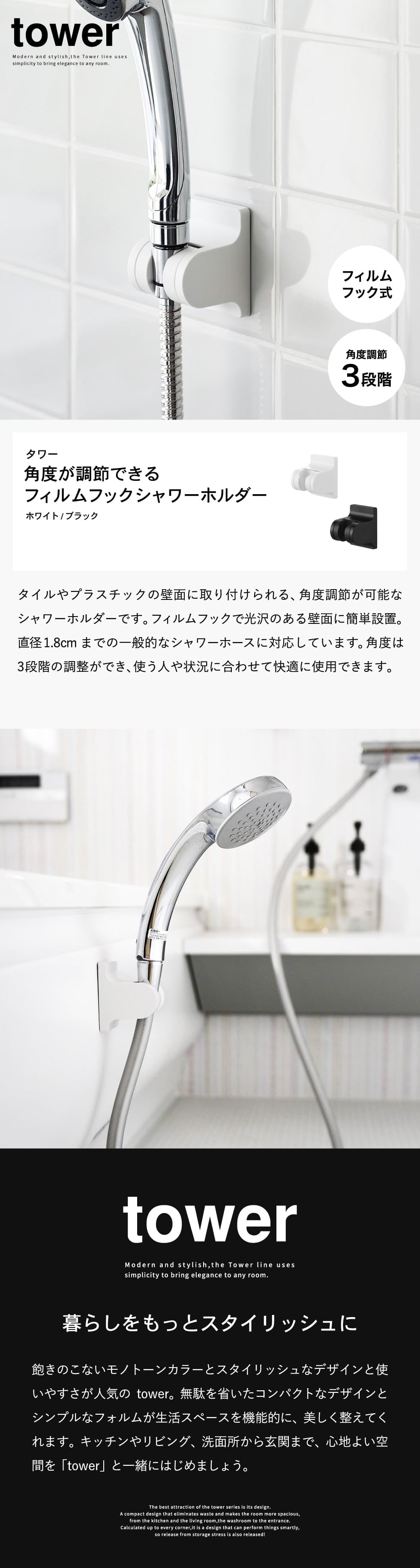山崎実業 tower 角度が調節できるフィルムフックシャワーホルダー タワー 山崎実業 tower 10288 10289 / シャワーフック シャワーヘッド お風呂 バスルーム 浴槽 タイル 貼付け タワーシリーズ / ブラック