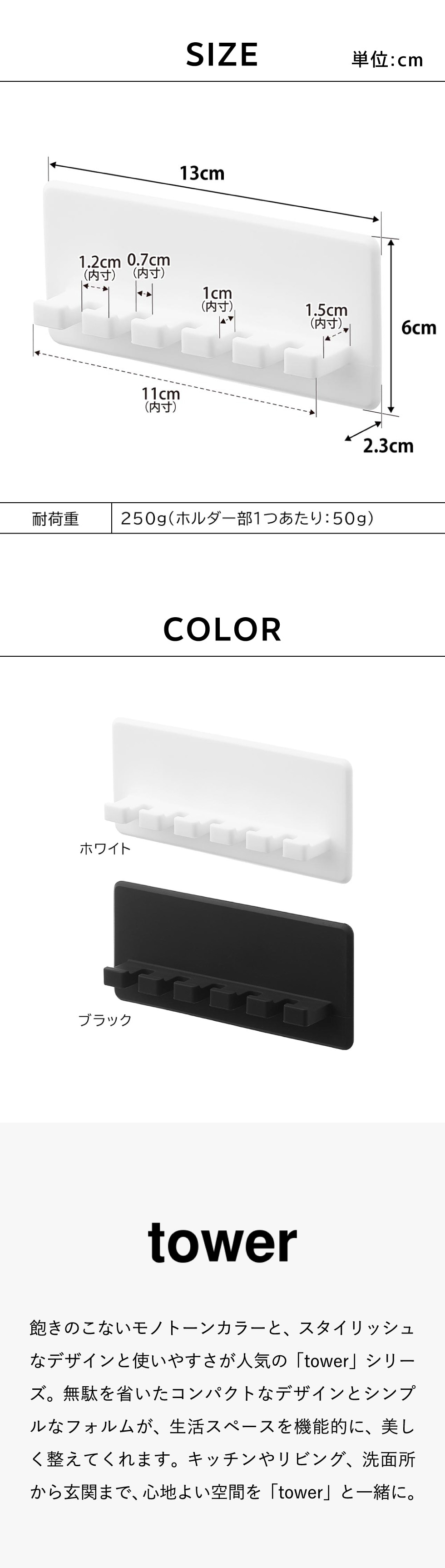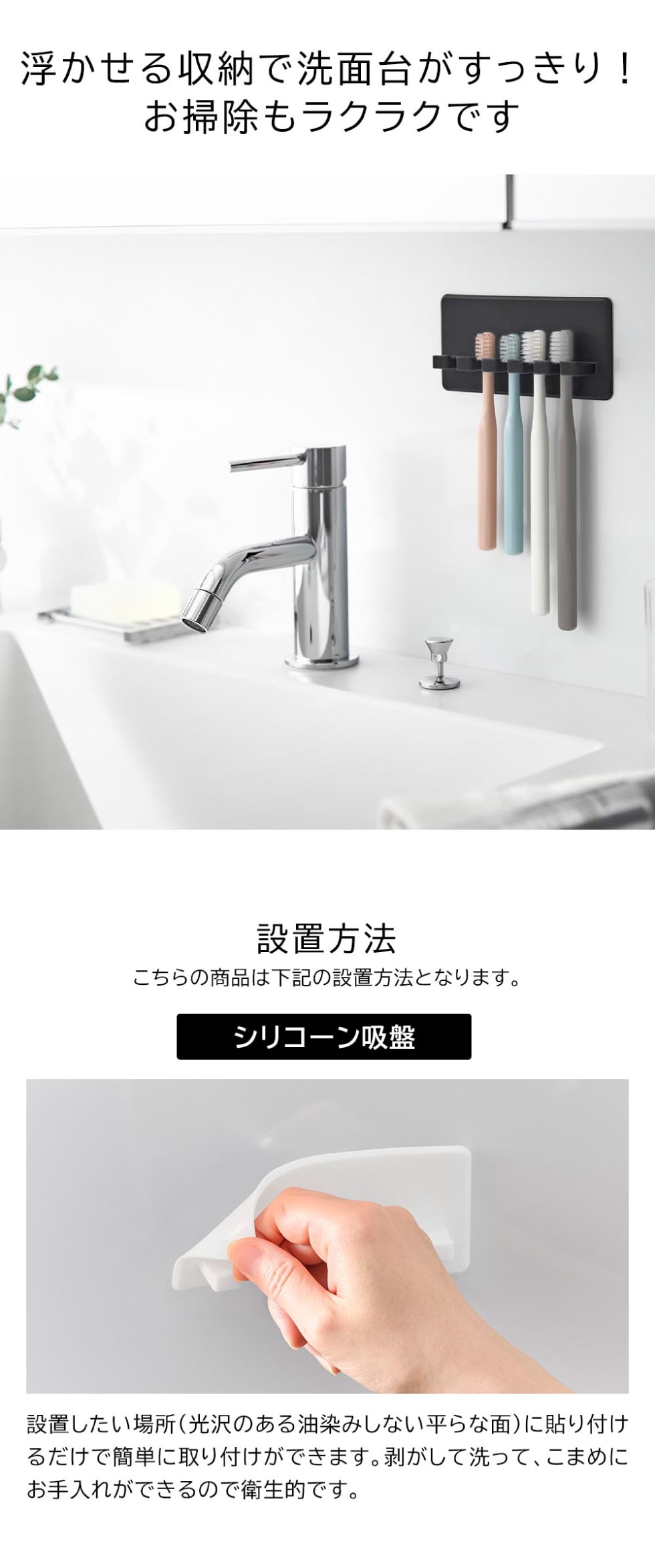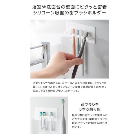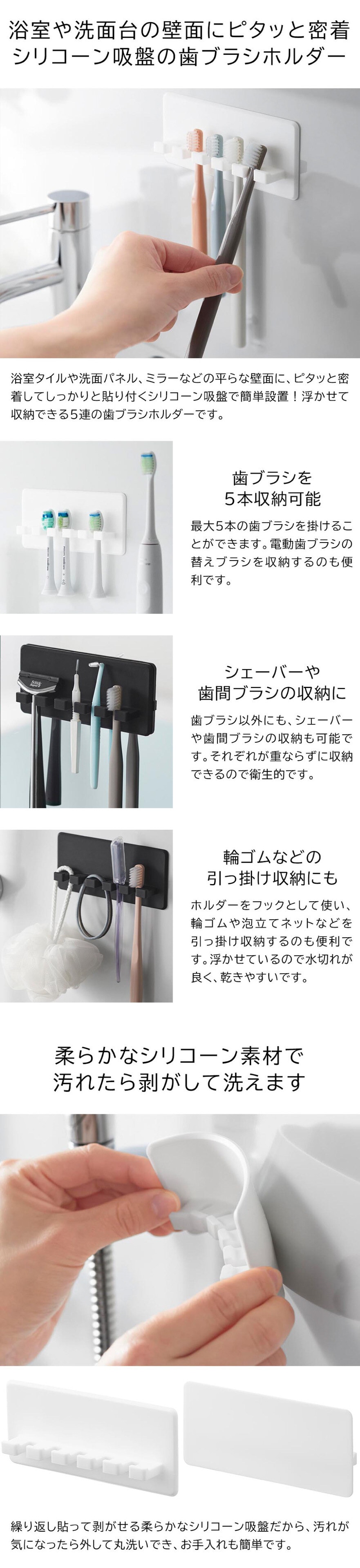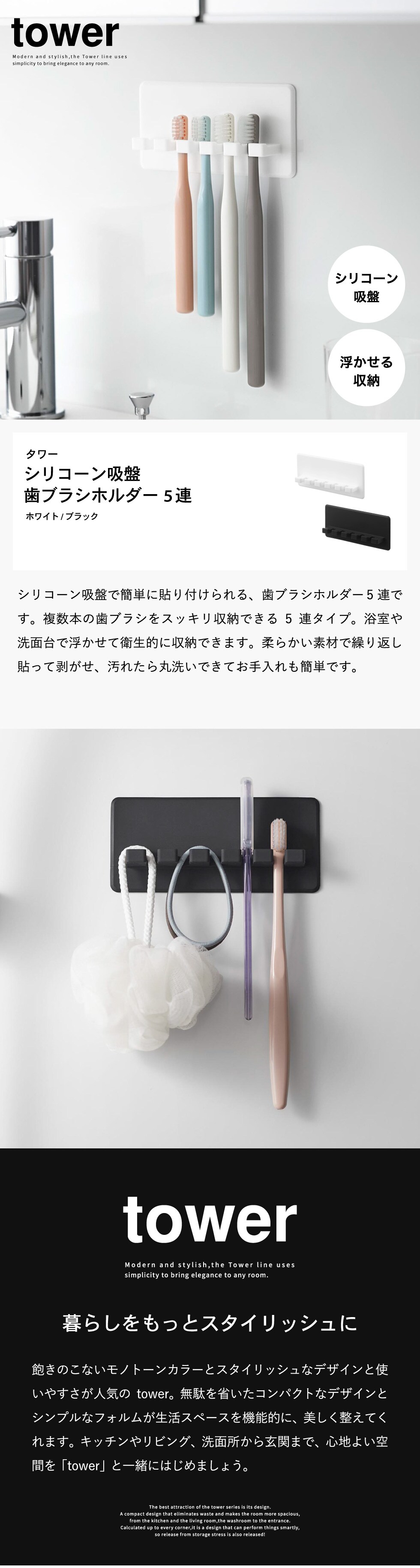 山崎実業 tower シリコーン吸盤歯ブラシホルダー タワー 5連 公式 10298 10299 / 歯ブラシスタンド 歯ブラシ立て 歯ブラシ置き バスルーム お風呂 洗面所 洗面台 吊り下げ 収納 / ホワイト