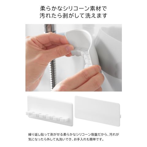 ■使用できる面 光沢のある平らな油染みしない面で吸着面よりも大きい面(タイル・プラスチック・ステンレス・ガラス・鏡面(ミラー)) ※表面加工・材質・状態などによっては貼り付けできない場合があります。 |