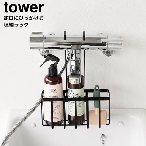 山崎実業 tower 蛇口にひっかける収納ラック タワー 公式 10310 10311 / スロップシンク ガーデンシンク 屋外 シンク 洗面 ランドリー 洗濯 予洗い ペット 靴 泥汚れ yamazaki / ブラック
