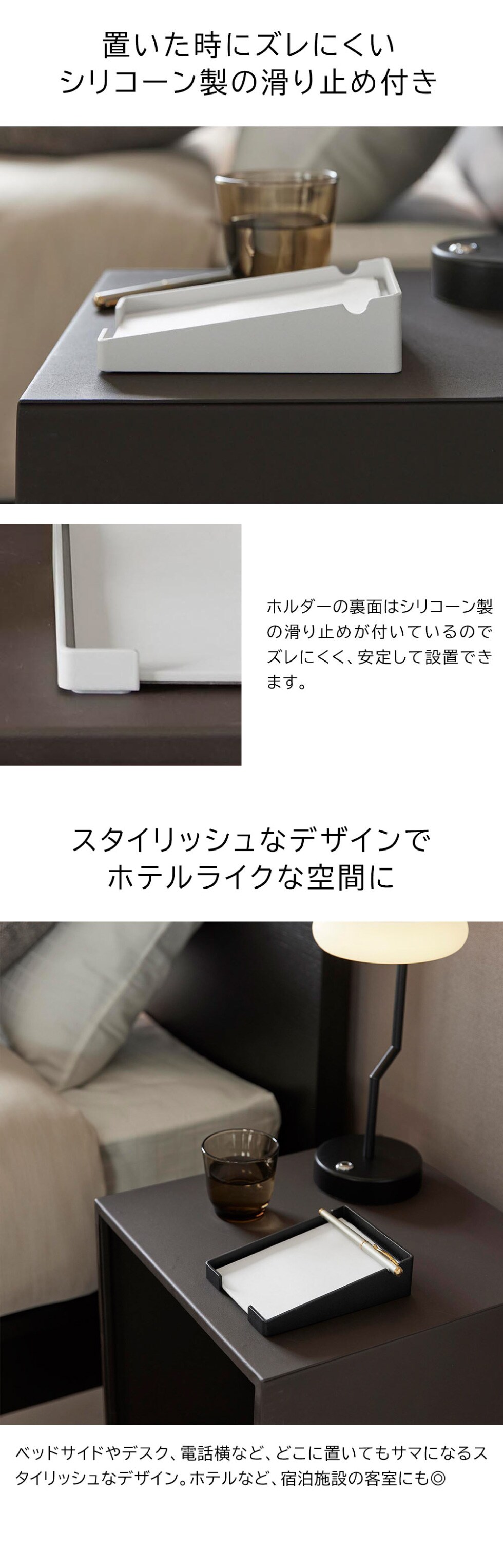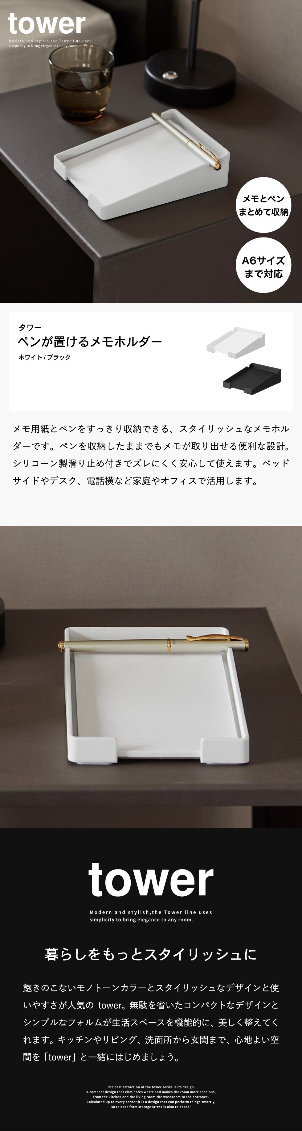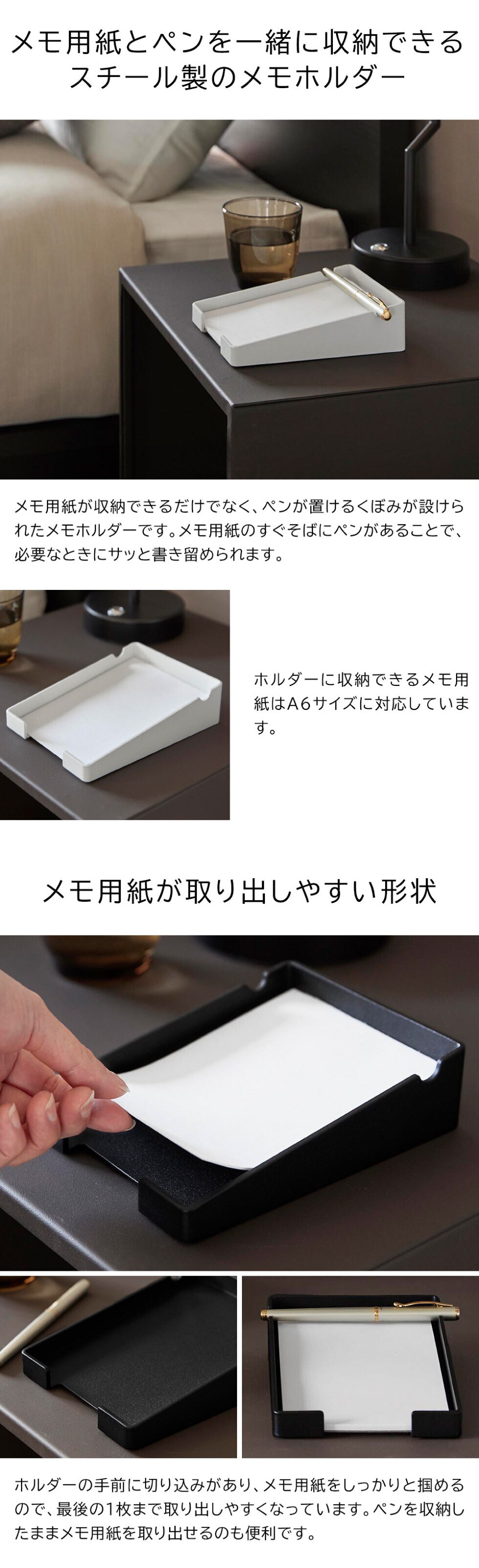 山崎実業 tower ペンが置けるメモホルダー タワー 公式 10328 10329 / A6サイズ トレー メモパッド メモスタンド メモ置き 卓上 ホテルグッズ ボールペン タワーシリーズ yamazaki / ブラック
