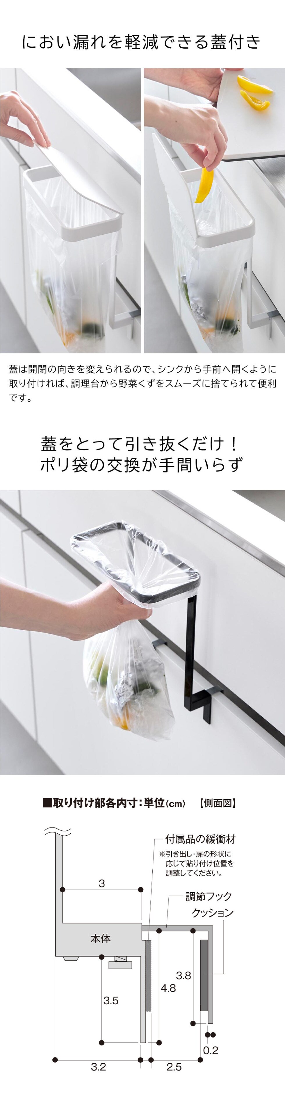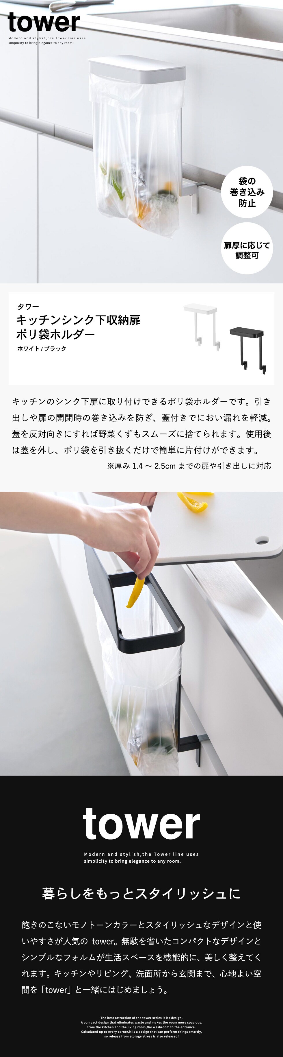 山崎実業 tower キッチンシンク下収納扉ポリ袋ホルダー タワー 公式 10334 10335 送料無料 / ビニール袋 レジ袋 流し台 ゴミ箱 ゴミ袋 生ゴミ 生ごみ 蓋付き ふた付き 流し台 yamazaki / ホワイト