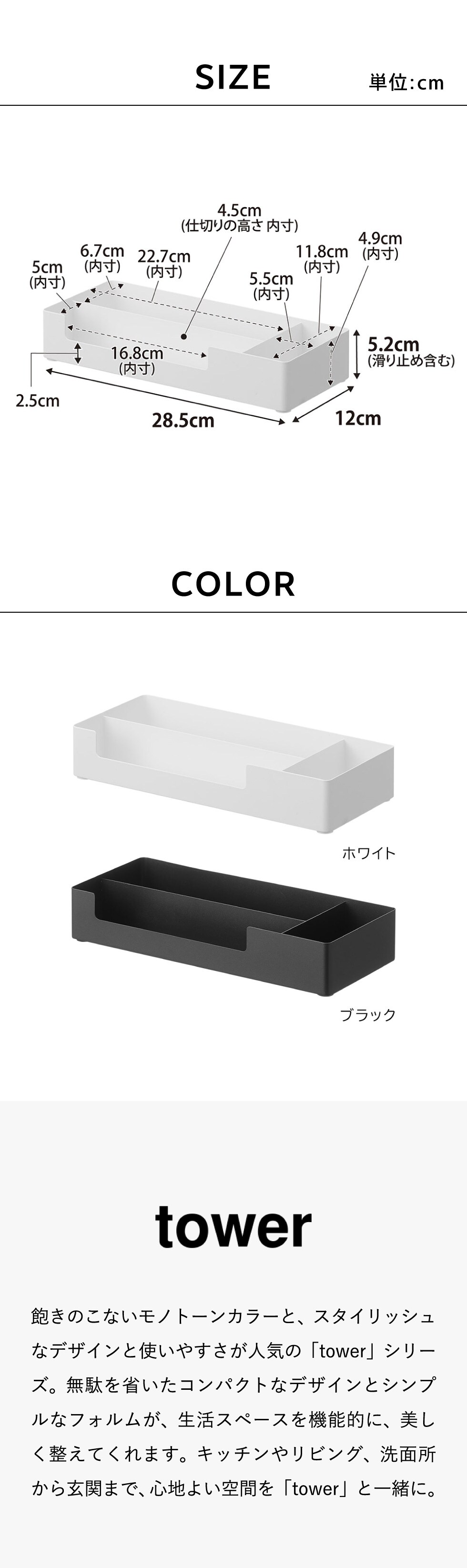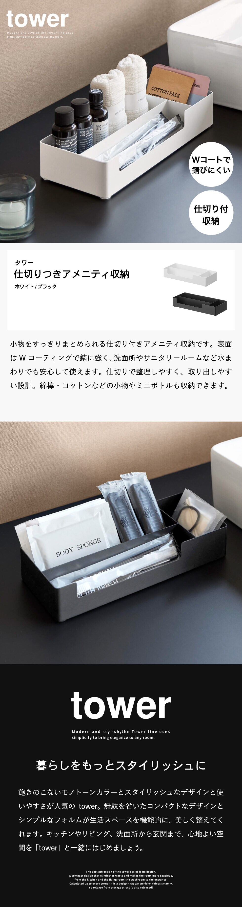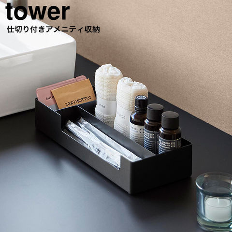 山崎実業 tower 仕切り付きアメニティ収納 タワー 公式 10338 10339 送料無料 / ホテルグッズ アメニティー アメニティグッズ 収納トレー トレイ 洗面所 洗面台 yamazaki タワーシリーズ / ブラック