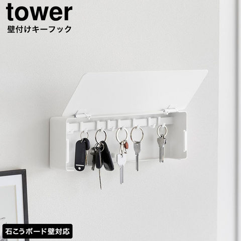 山崎実業 tower 壁付けキーフック タワー ロング 公式 10344 10345 送料無料 / 鍵 収納 鍵掛け キーボックス 玄関ドア 貼付け 玄関収納 浮かせる収納 タワーシリーズ yamazaki / ホワイト