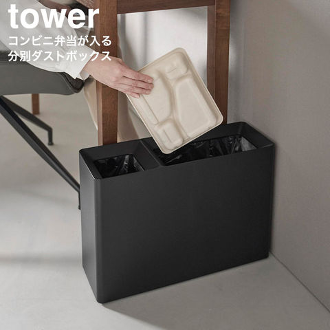 山崎実業 tower スーパー・コンビニ弁当がそのまま入る分別ダストボックス タワー 公式 10354 10355 送料無料 / ゴミ箱 リビング オフィス 分別 お弁当 ペットボトル 分別ゴミ箱 タワーシリーズ yamazaki / ブラック
