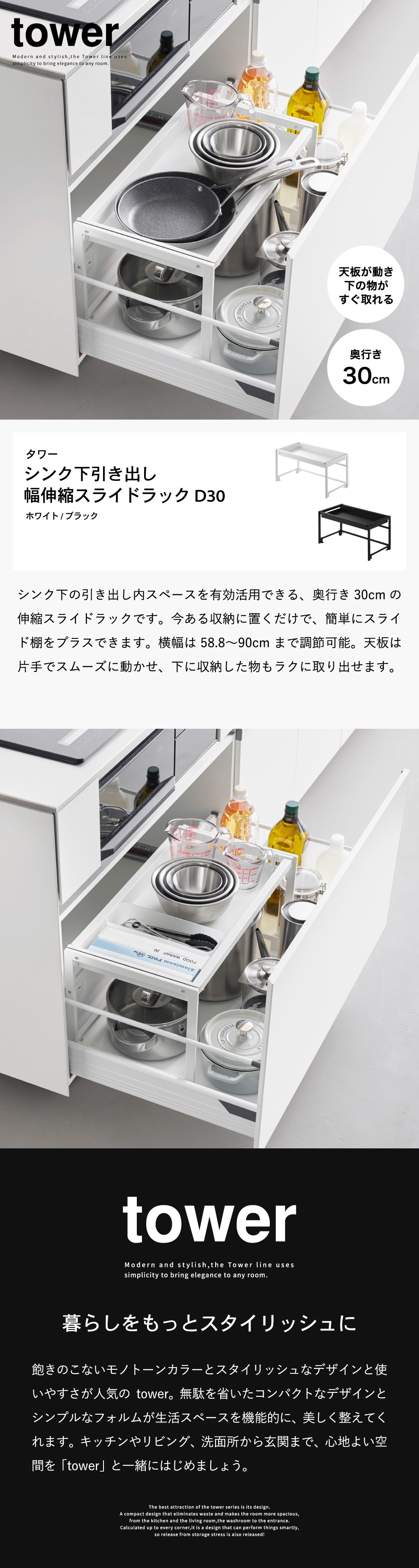 | シンク下引き出し幅伸縮スライドラック タワー D30 |