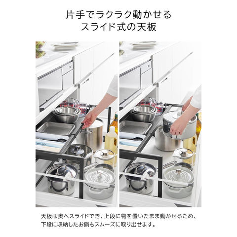 山崎実業 tower シンク下引き出し幅伸縮スライドラック タワー D30 10356 10357 送料無料 / 幅58.8~90cm 伸縮ラック 収納ラック スライドラック 棚 コンロ下 システムキッチン キッチン収納 / ホワイト