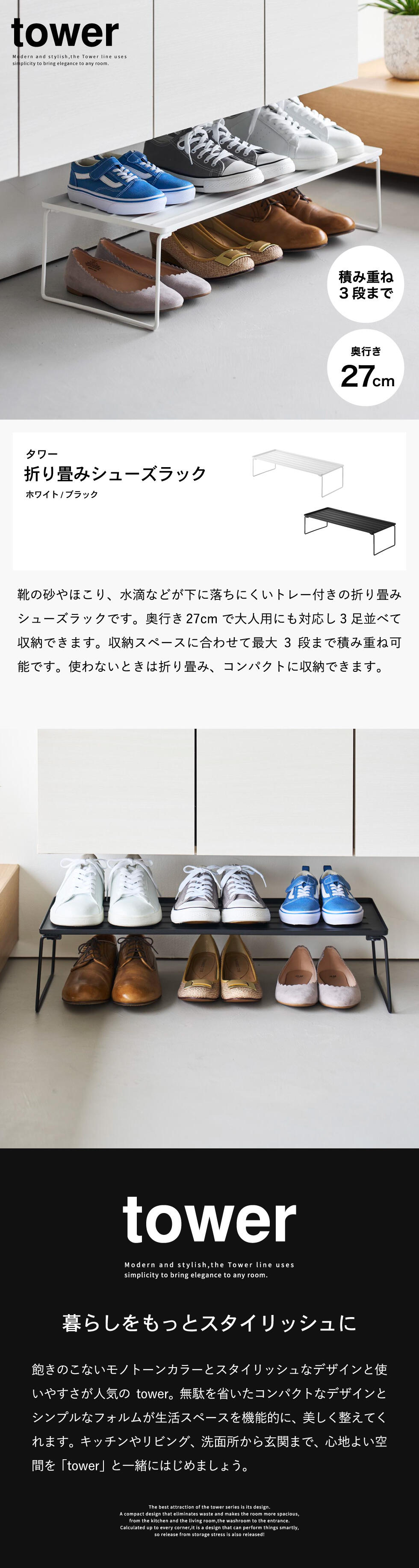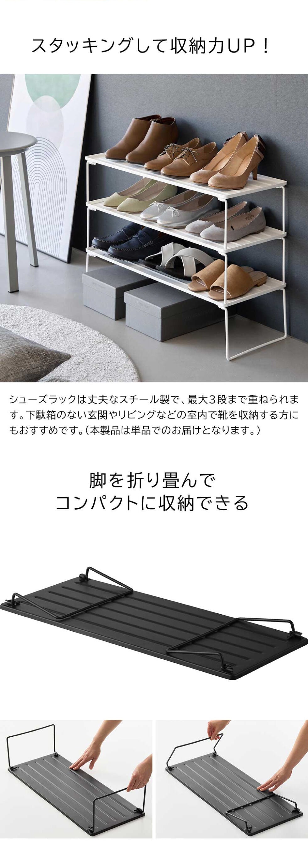 山崎実業 tower 折り畳みシューズラック タワー 公式 10362 10363 送料無料 / 玄関 靴収納 玄関収納 靴置き 靴箱 靴棚 シューズボックス 省スペース スリム 積み重ね yamazaki / ホワイト