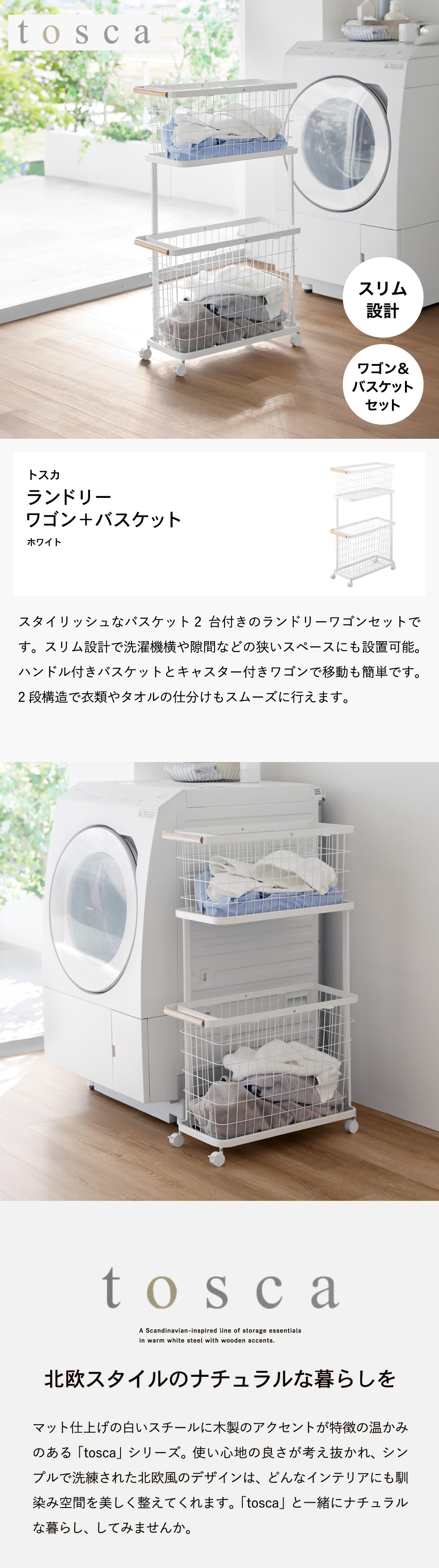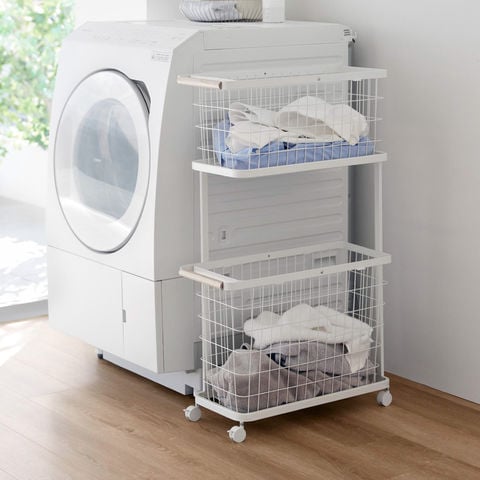 山崎実業 tosca ランドリーワゴン+バスケット トスカ スリム 公式 10379 ホワイト 送料無料 / ランドリーバスケット 2段 洗濯かご 洗濯カゴ ランドリーラック ランドリー収納 洗濯機横 洗濯物 脱衣所 yamazaki