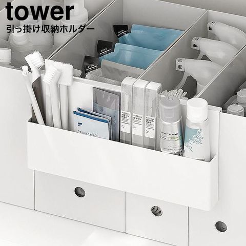 山崎実業 tower 引っ掛け収納ホルダー タワー 公式 10385 10386 / 引っ掛け 小物 化粧品 コスメ メイク用品 収納 コスメスタンド 文房具 ペンスタンド 洗面台 タワーシリーズ yamazaki / ホワイト