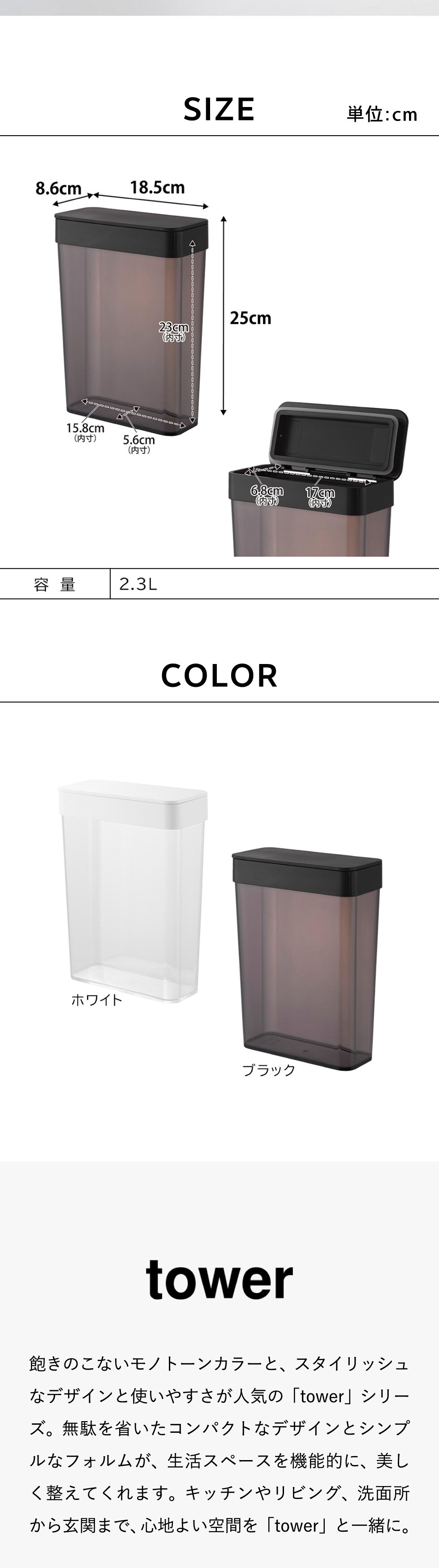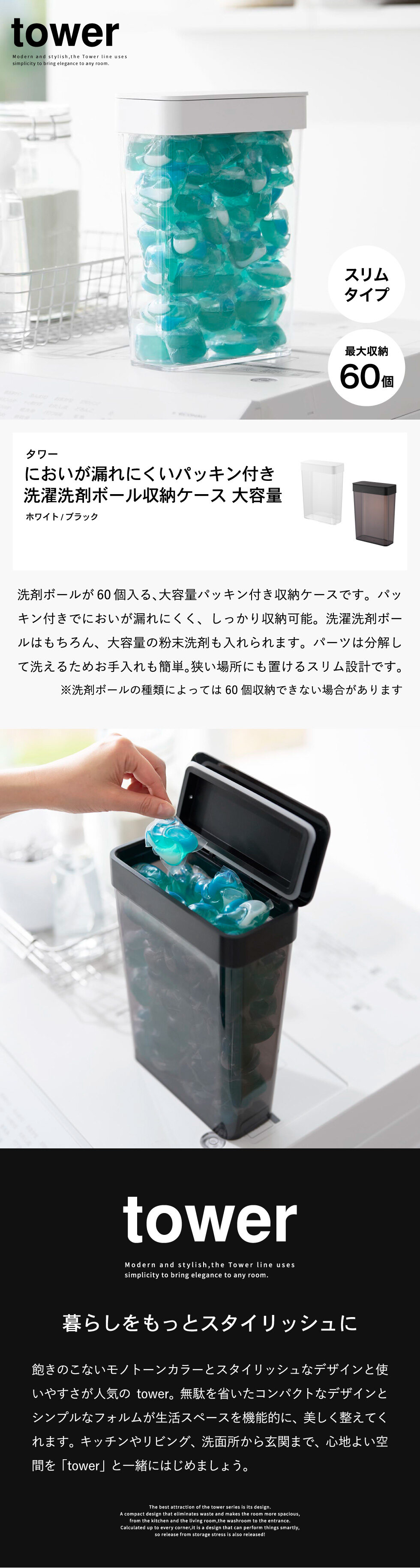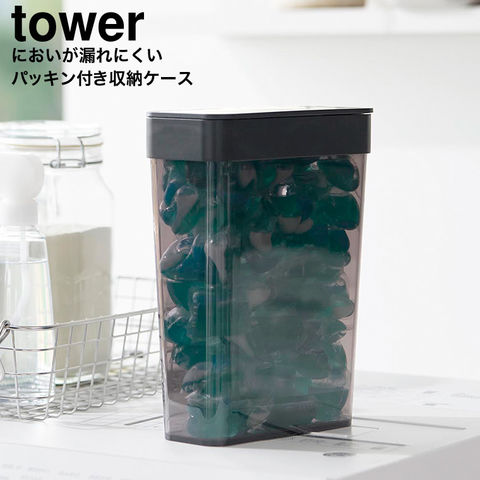 tower においが漏れにくいパッキン付き洗濯洗剤ボール収納ケース タワー 大容量 山崎実業 10389 10390/ 容量2.3L 詰め替え用 ケース ジェルボール 粉洗剤 yamazaki / ブラック