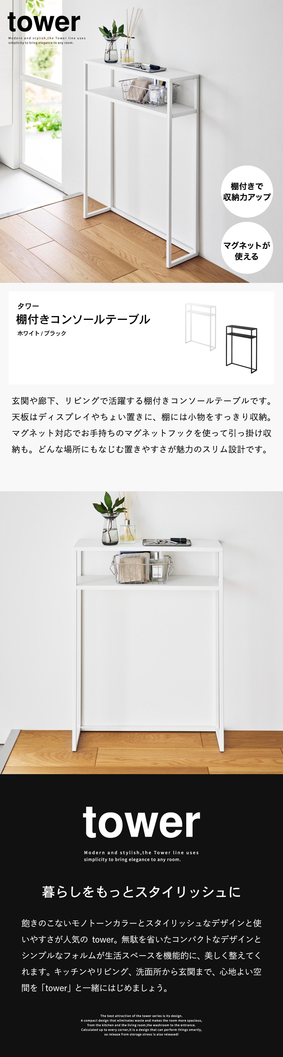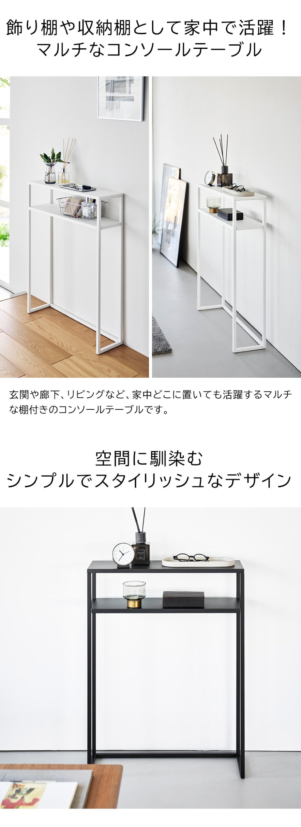 山崎実業 tower 棚付きコンソールテーブル タワー 公式 10393 10394 送料無料 / スリム 玄関テーブル リビング 寝室 収納 ディスプレイ棚 小物置き オープンラック サイドテーブル タワーシリーズ / ブラック