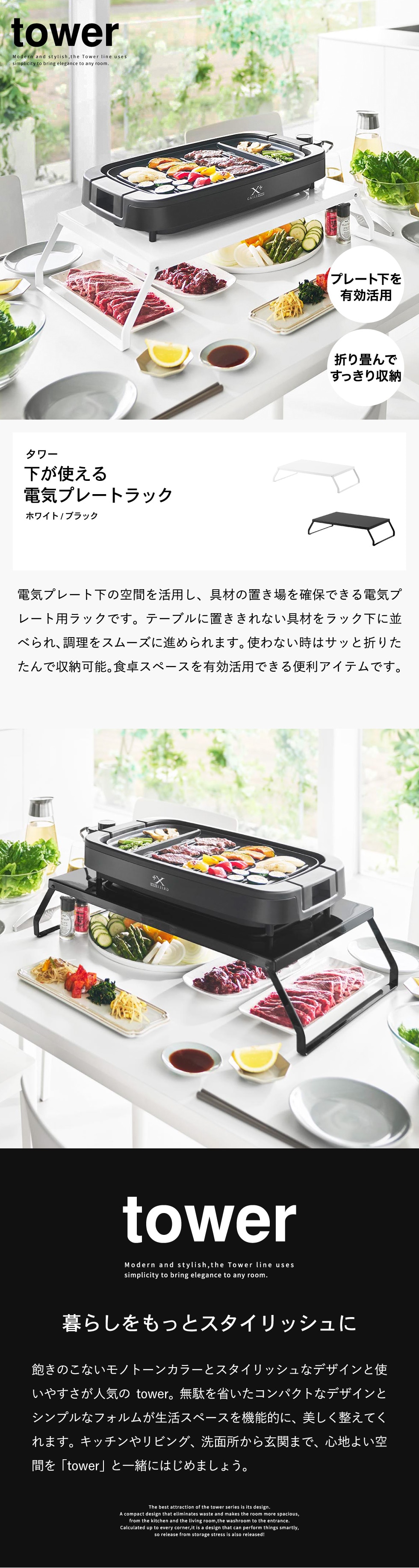 tower 下が使える電気プレートラック タワー 山崎実業 10403 10404 送料無料 / ホットプレート 卓上コンロ 台 焼肉 コンパクト収納 キッチン タワーシリーズ yamazaki / ホワイト