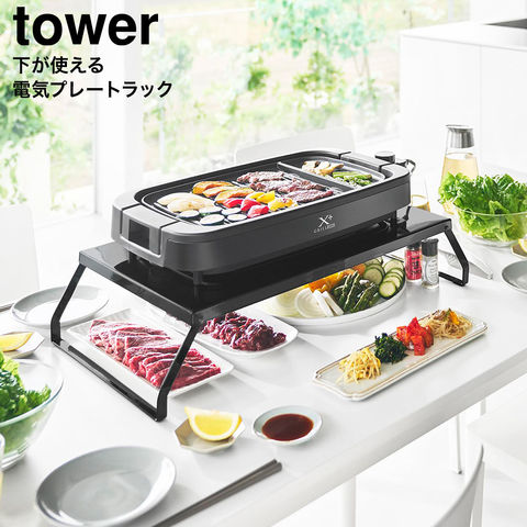 tower 下が使える電気プレートラック タワー 山崎実業 10403 10404 送料無料 / ホットプレート 卓上コンロ 台 焼肉 コンパクト収納 キッチン タワーシリーズ yamazaki / ブラック