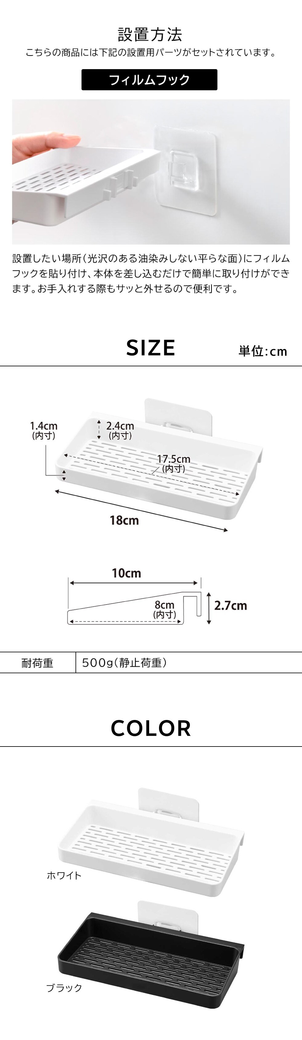 商品サイズ W18×D10×H2.7cm(フィルムフック含まず) フィルムフック接着面:W7.2×H7cm |