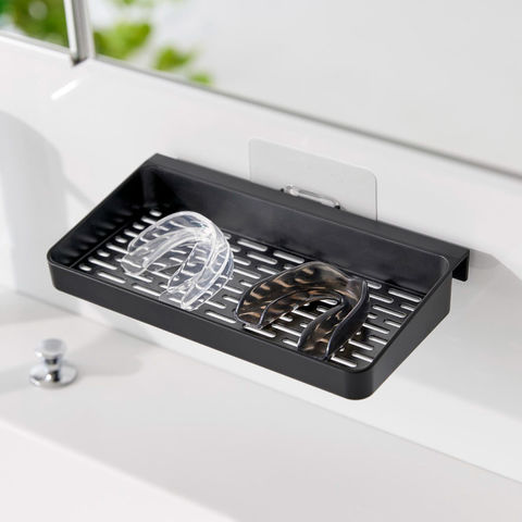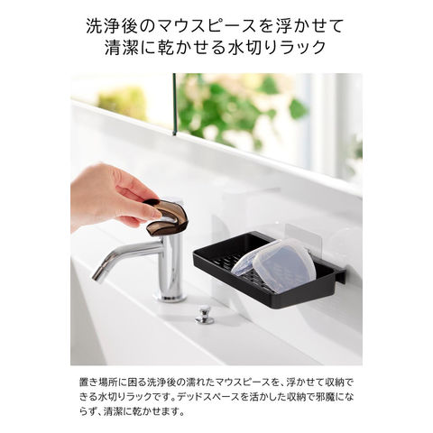 山崎実業 tower フィルムフックマウスピース水切りラック タワー 公式 10444 10445 / 洗面所 洗面台 うがいコップ コンタクト用品 浮かせる収納 yamazaki タワーシリーズ / ブラック