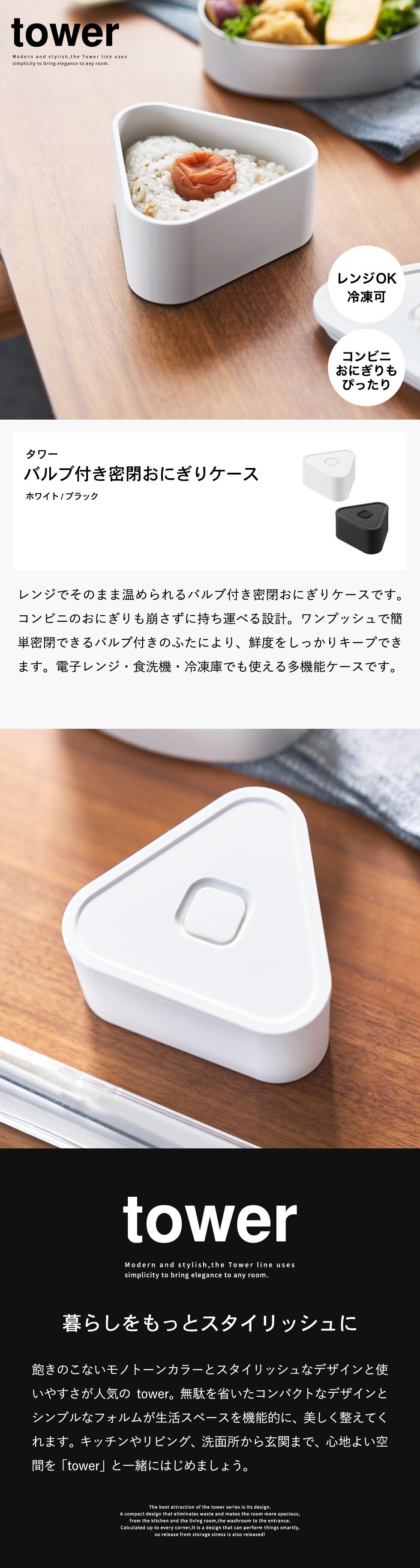 山崎実業 tower バルブ付き密閉おにぎりケース タワー 公式 10464 10465 / 容量230mL おにぎり おむすび 弁当箱 ランチボックス コンビニ にぎらず作れる 食洗機 電子レンジ 対応 タワーシリーズ JGS / ブラック