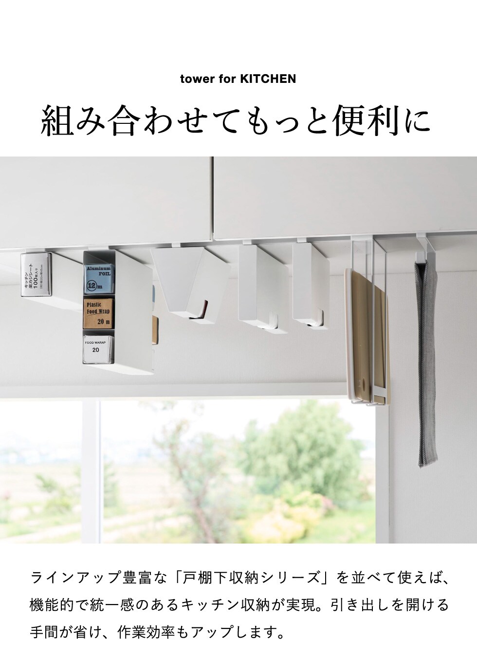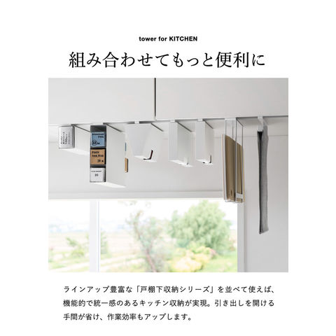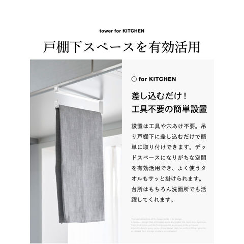 山崎実業 tower 戸棚下タオルハンガー タワー スリム 公式 10501 10502 / タオル掛け タオルバー ふきん掛け 布巾掛け ふきんハンガー 布巾ハンガー 台拭き キッチンクロス 吊り戸棚 キッチン収納 / ブラック