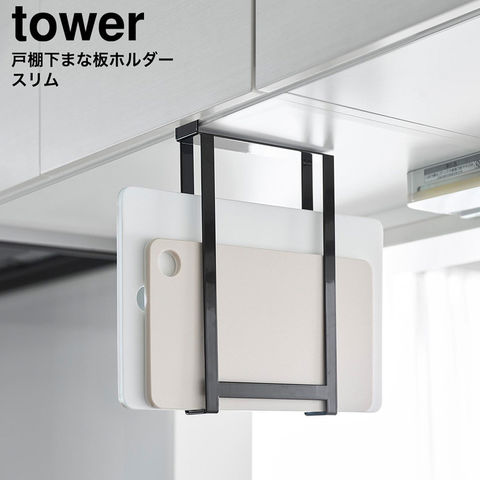 山崎実業 tower 戸棚下まな板ホルダー タワー スリム 公式 10503 10504/ まな板立て まな板スタンド マナ板スタンド まな板置き 水切り 吊り戸棚 キッチン収納 浮かせる収納 / ブラック