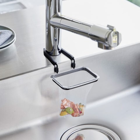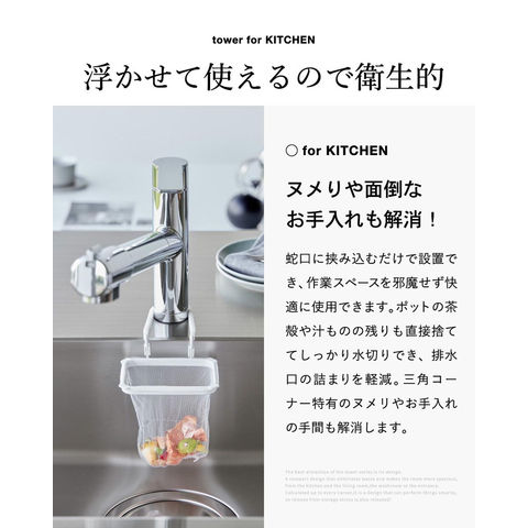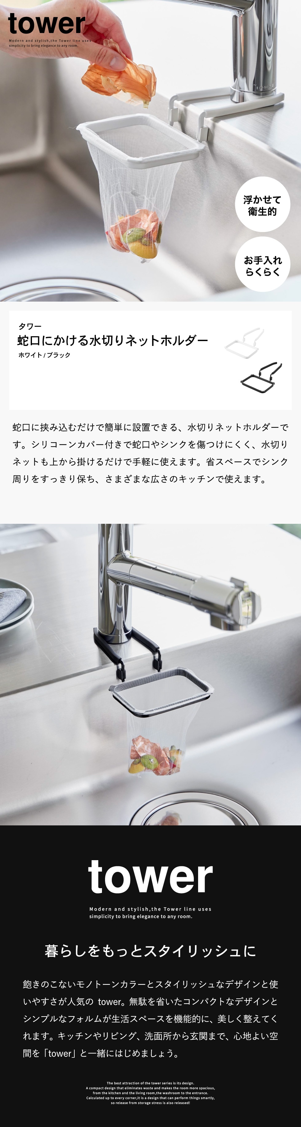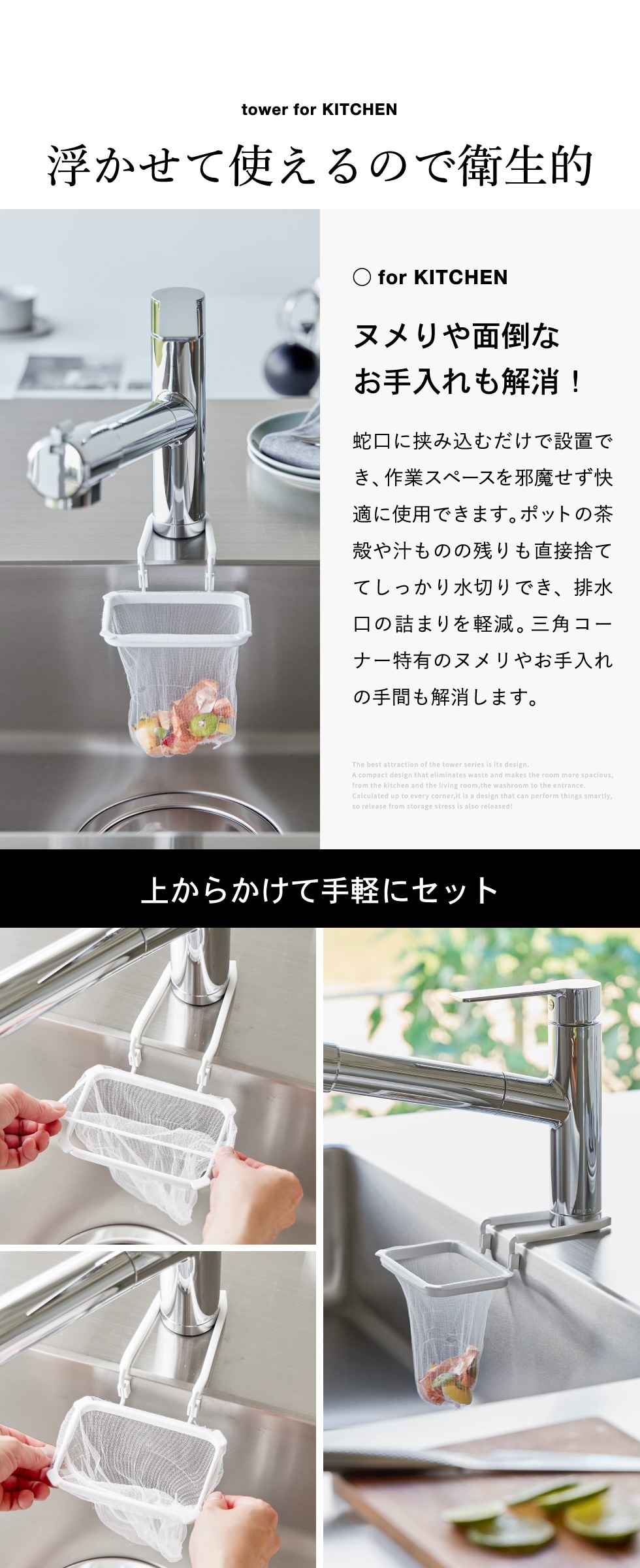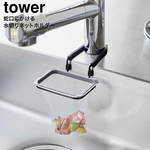 山崎実業 tower 蛇口にかける水切りネットホルダー タワー 公式 10515 10516 / 三角コーナー 生ごみ 生ゴミ入れ ゴミ箱 水切り袋 ゴミ袋ホルダー シンク内 ポリ袋ホルダー yamazaki / ブラック