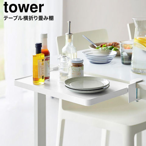 山崎実業 tower テーブル横折り畳み棚 タワー 公式 10523 10524 送料無料 / 補助テーブル 作業台 サポートテーブル バタフライテーブル スペース 食卓テーブル パソコンデスク 収納 yamazaki / ホワイト