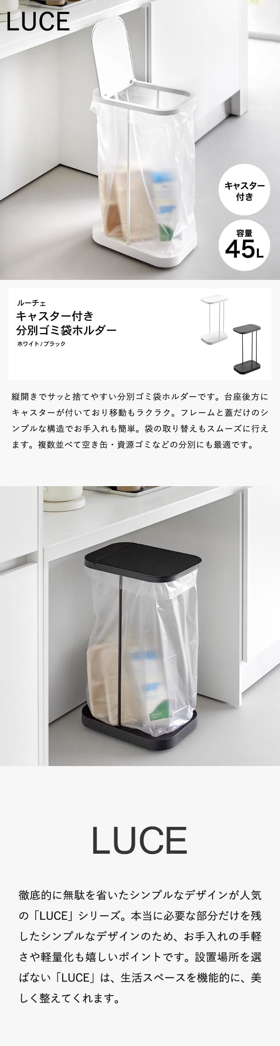 山崎実業 LUCE キャスター付き分別ゴミ袋ホルダー ルーチェ 山崎実業 公式 10565 10566 送料無料 / ゴミ箱 ダストボックス ゴミ袋スタンド 30L 45L そのまま 分別 資源ごみ リサイクル タワー yamazaki / ホワイト