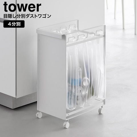 山崎実業 tower 目隠し分別ダストワゴン タワー 4分別 公式 10618 10619 送料無料 / ゴミ箱 ダストボックス キャスター付き キッチン 用品 台所 レジ袋 ゴミ袋 yamazaki JGS / ホワイト