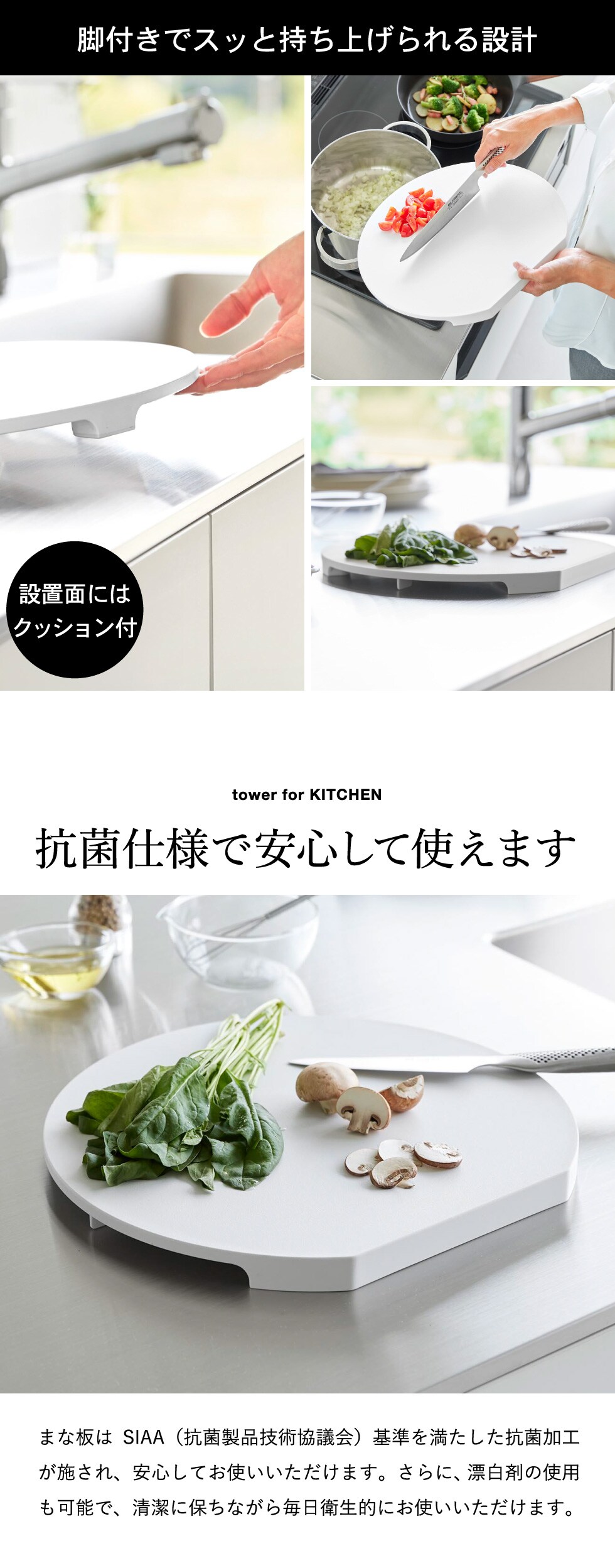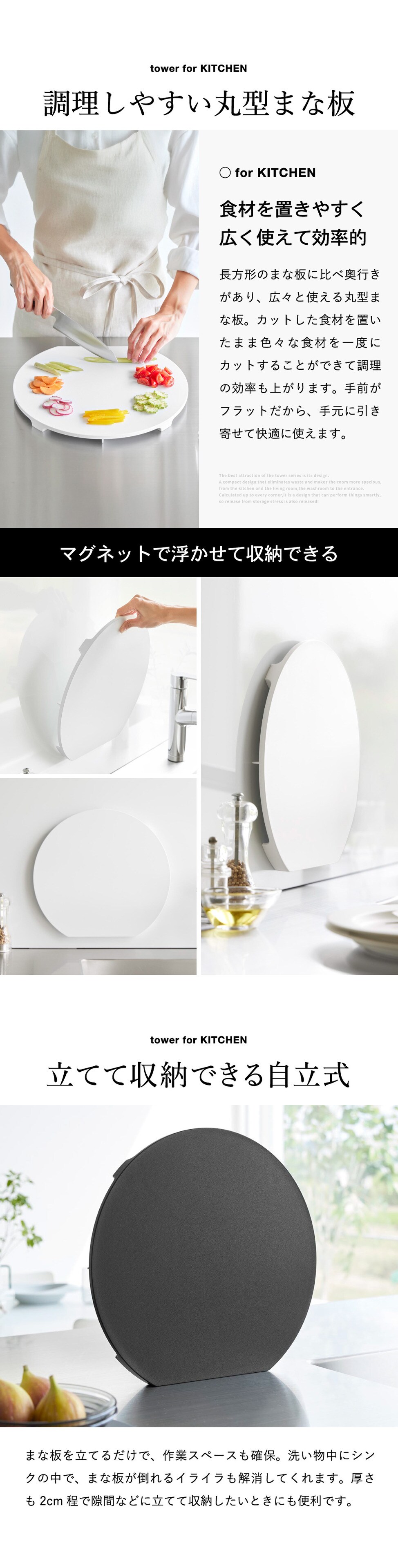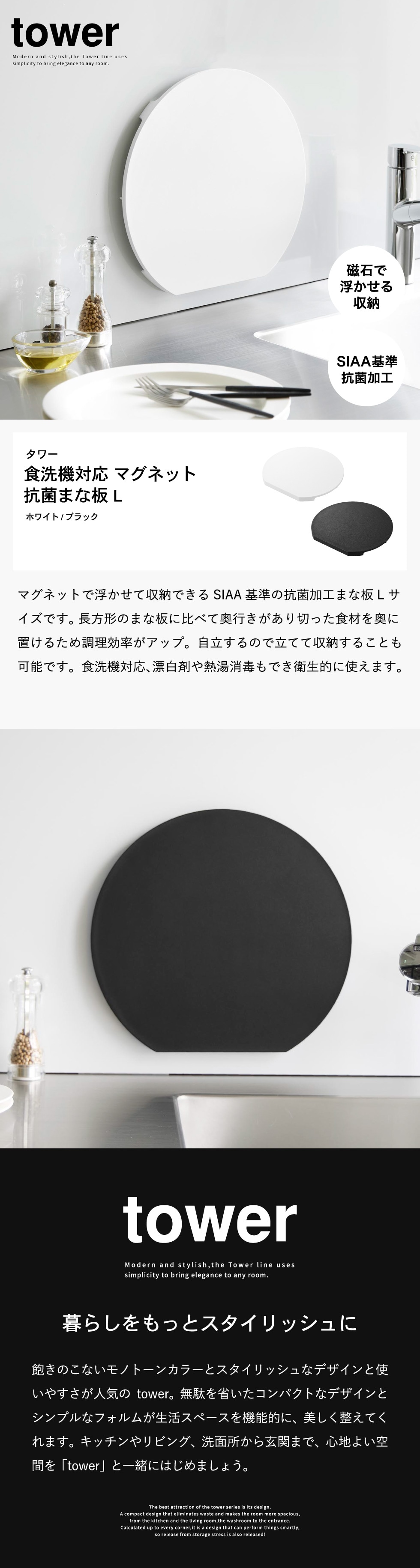 山崎実業 tower 食洗機対応 マグネット抗菌まな板 タワー ラウンド L 公式 10624 10625 送料無料 / カッティングボード 浮かせる収納 磁石 キッチンツール 調理器具 タワーシリーズ yamazaki / ブラック