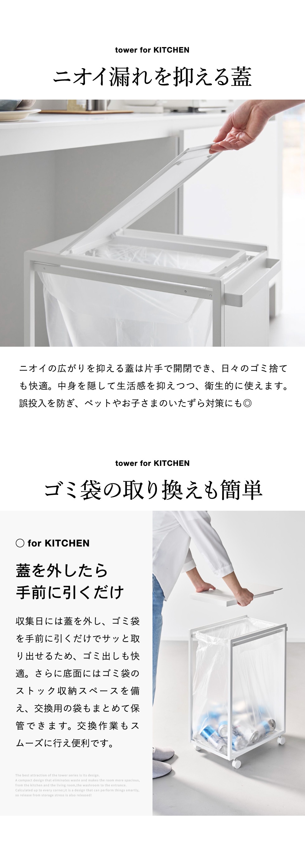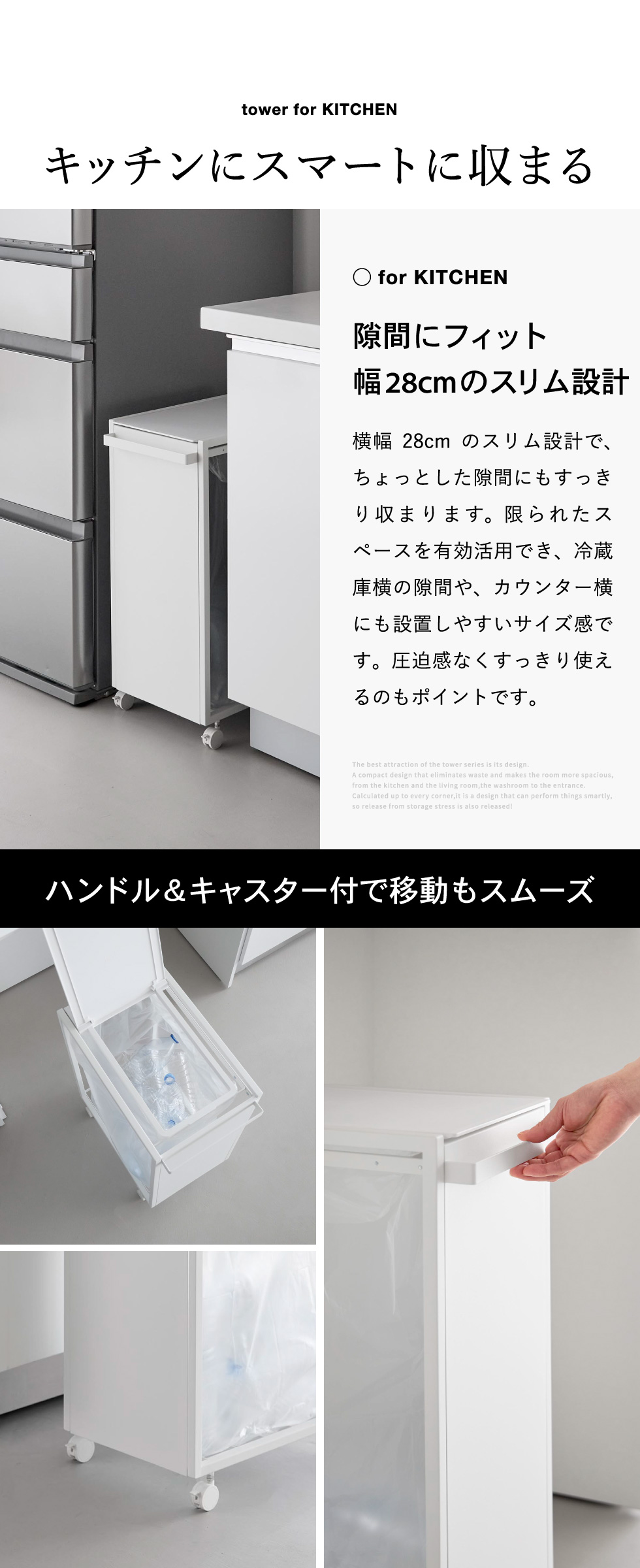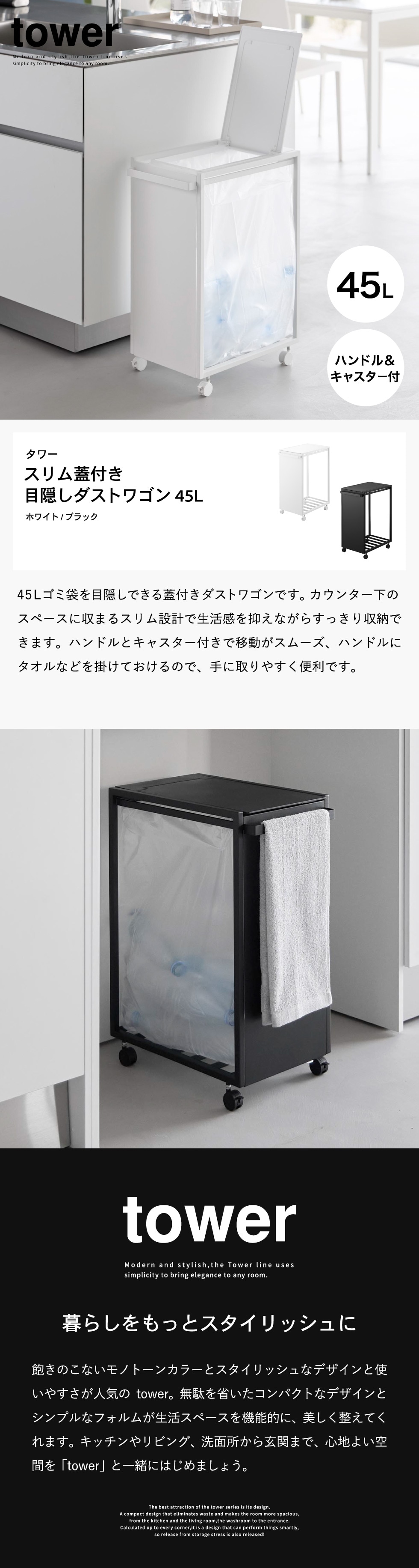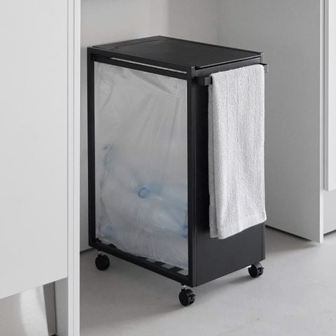 山崎実業 tower スリム蓋付き目隠しダストワゴン タワー 45L 公式 10639 10640 送料無料 / ゴミ箱 ダストボックス キャスター付き 省スペース ゴミ袋 分別 キッチン 台所 yamazaki JGS / ブラック